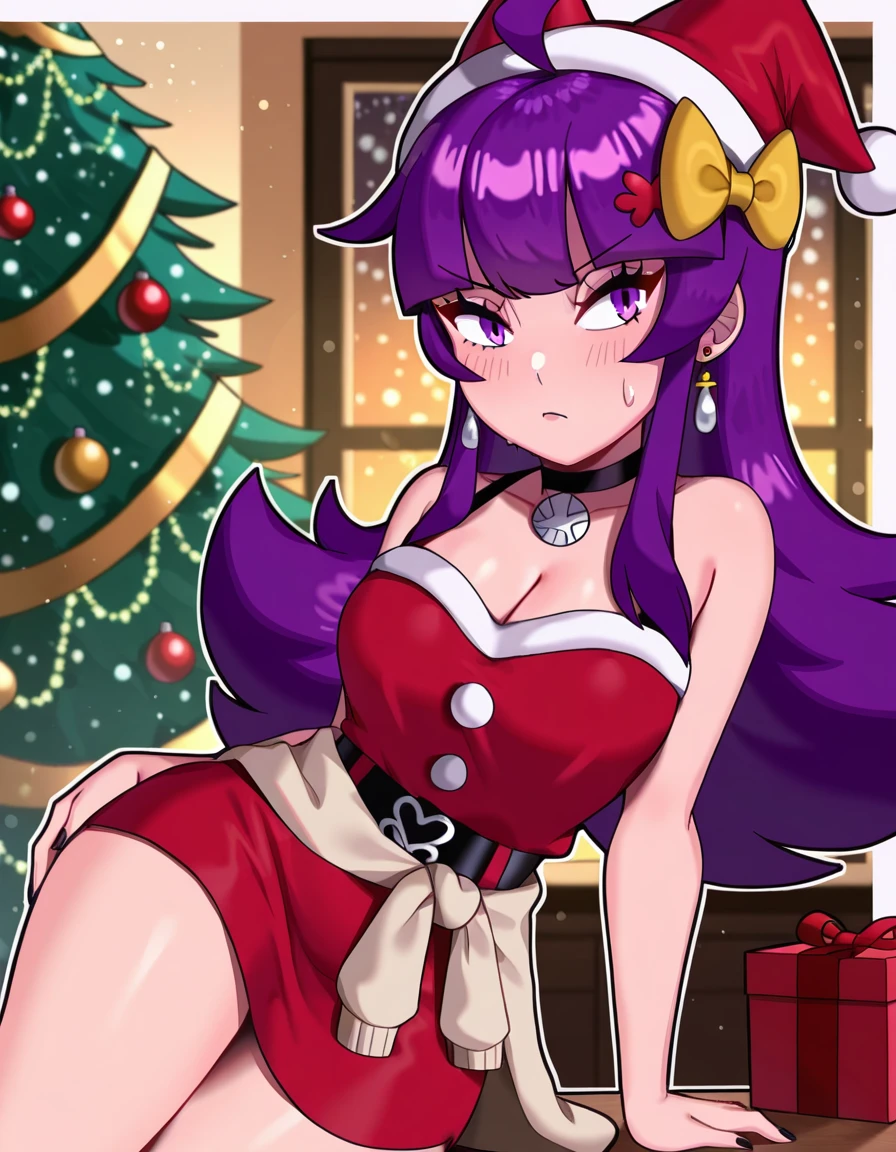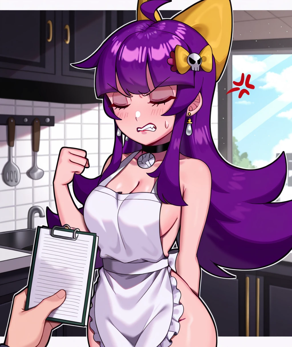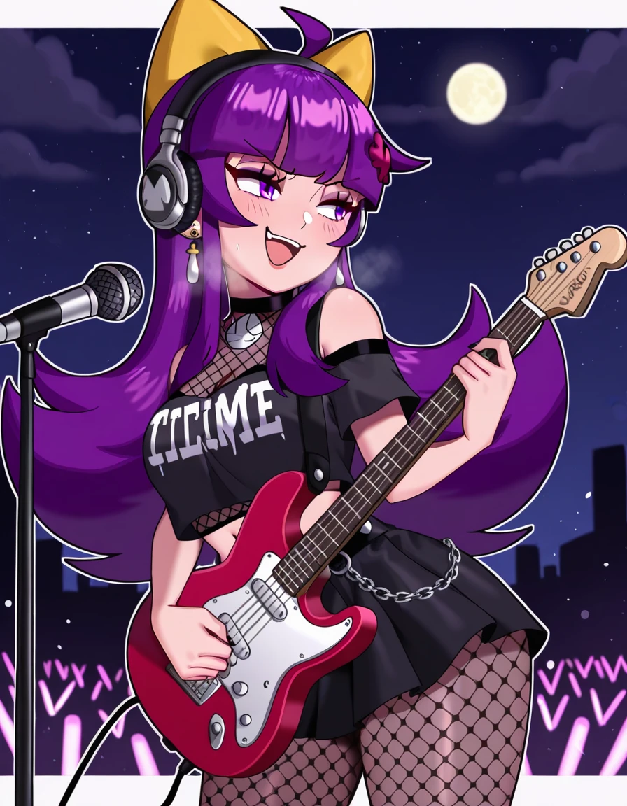 violentine (sarukaiwolf), sarukaiwolf, medium breasts, purple hair, purple eyes, long hair, goth, yellow bow, hair bow, hair ornament, black choker, necklace, circle necklace, earrings
