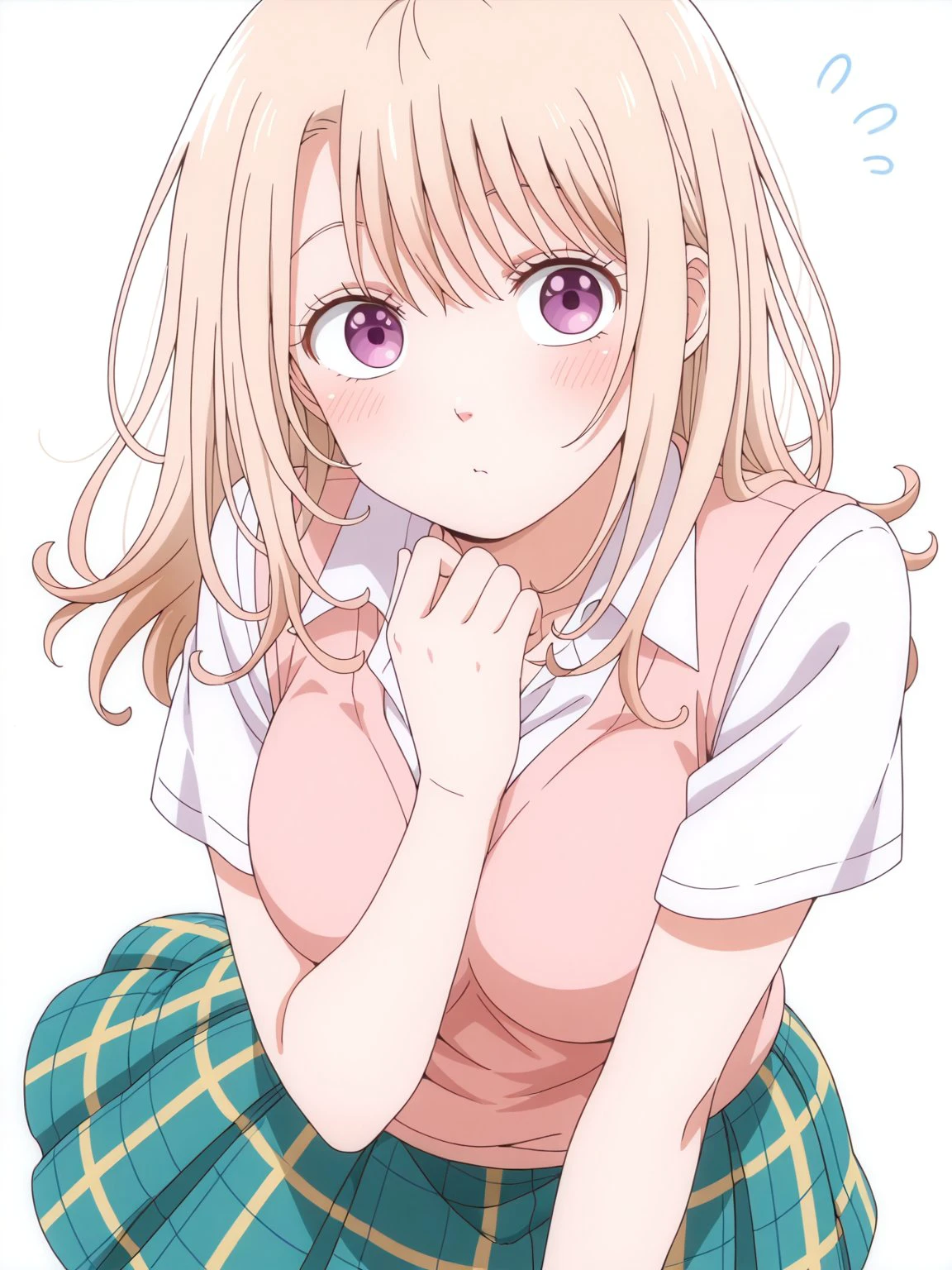 white shirt, short sleeves, plaid skirt, sweater vest,