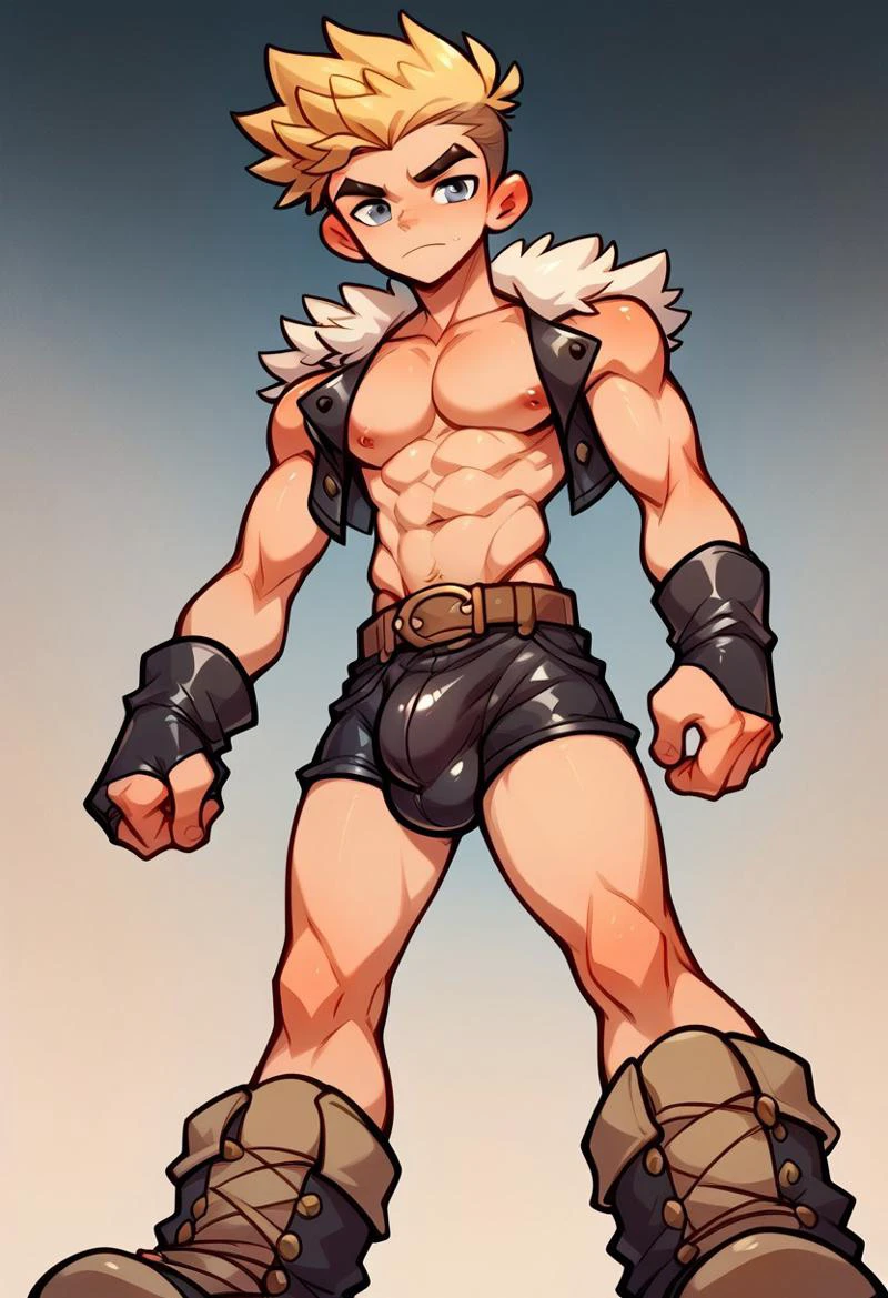 Mike, spiky blonde hair, grey eyes,