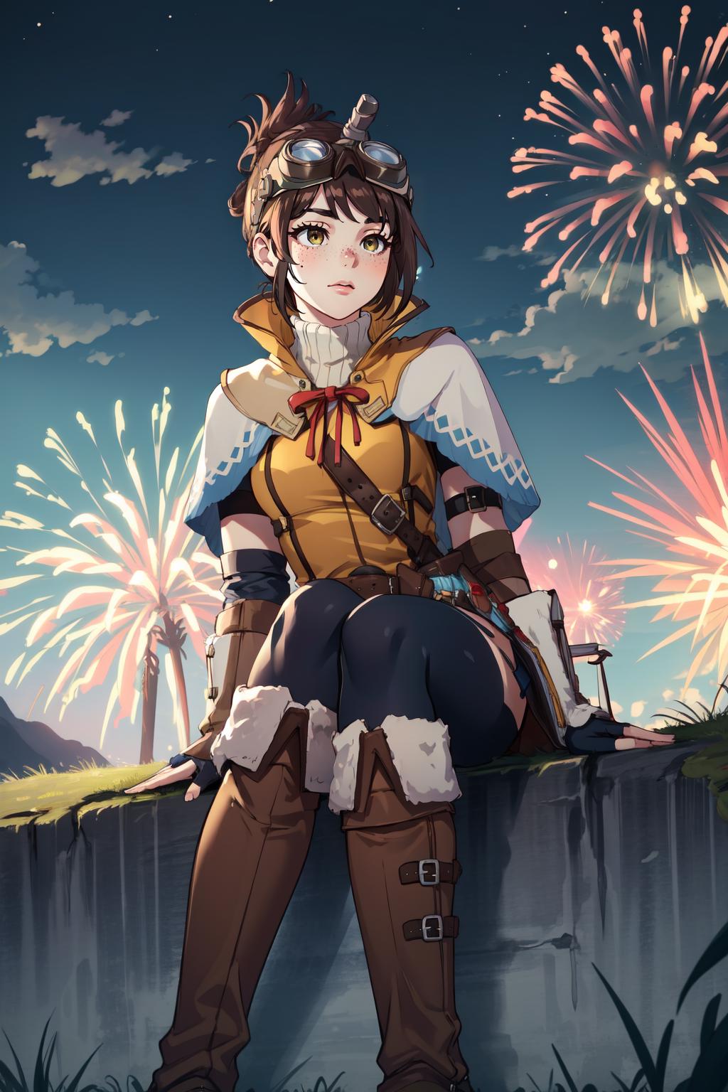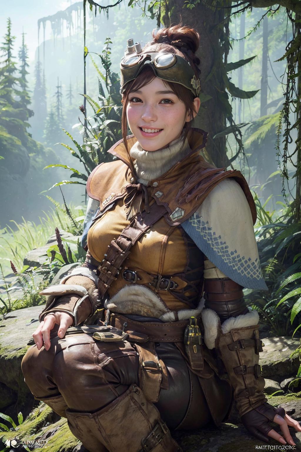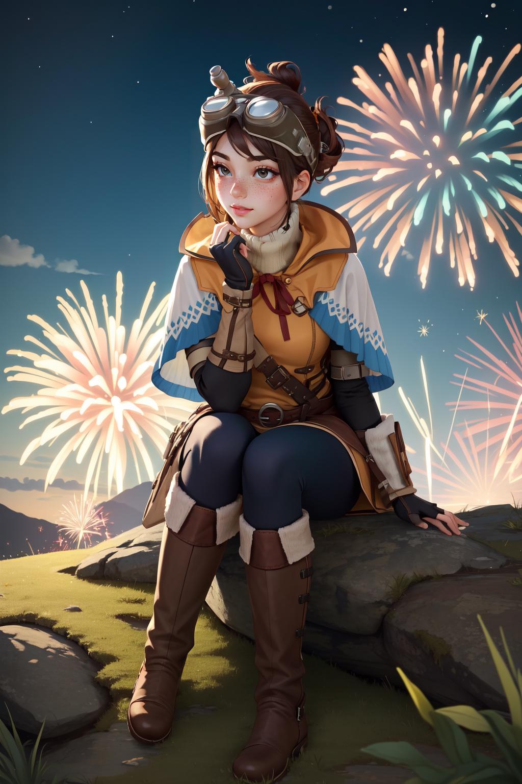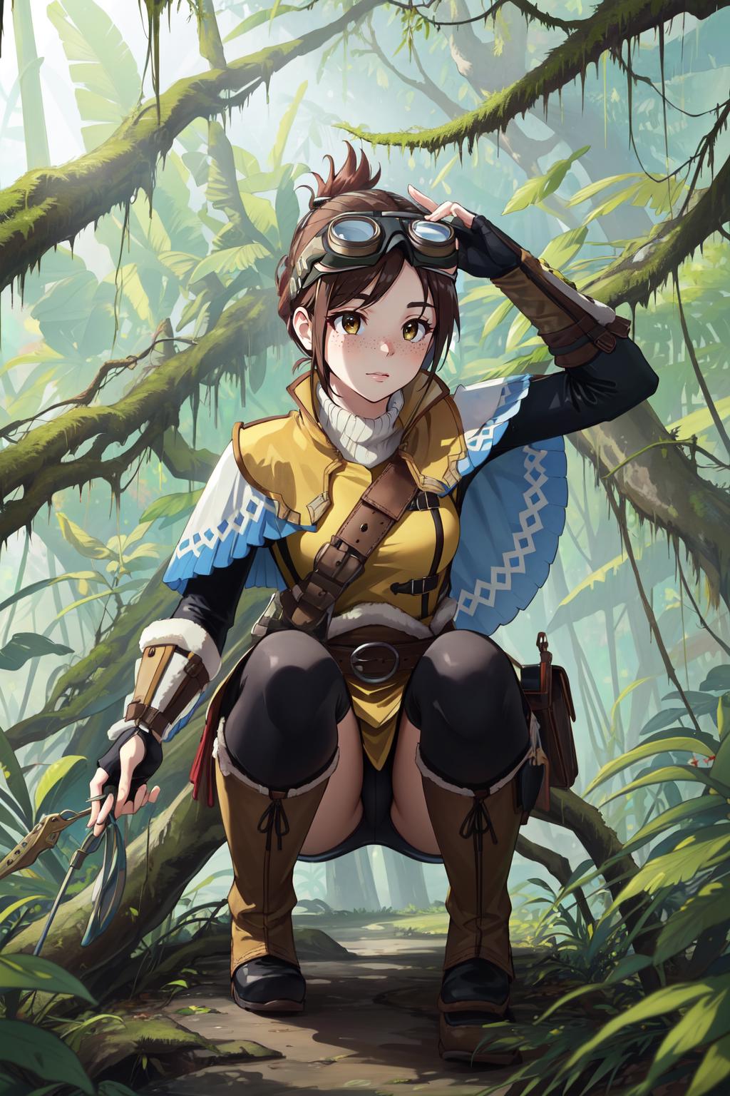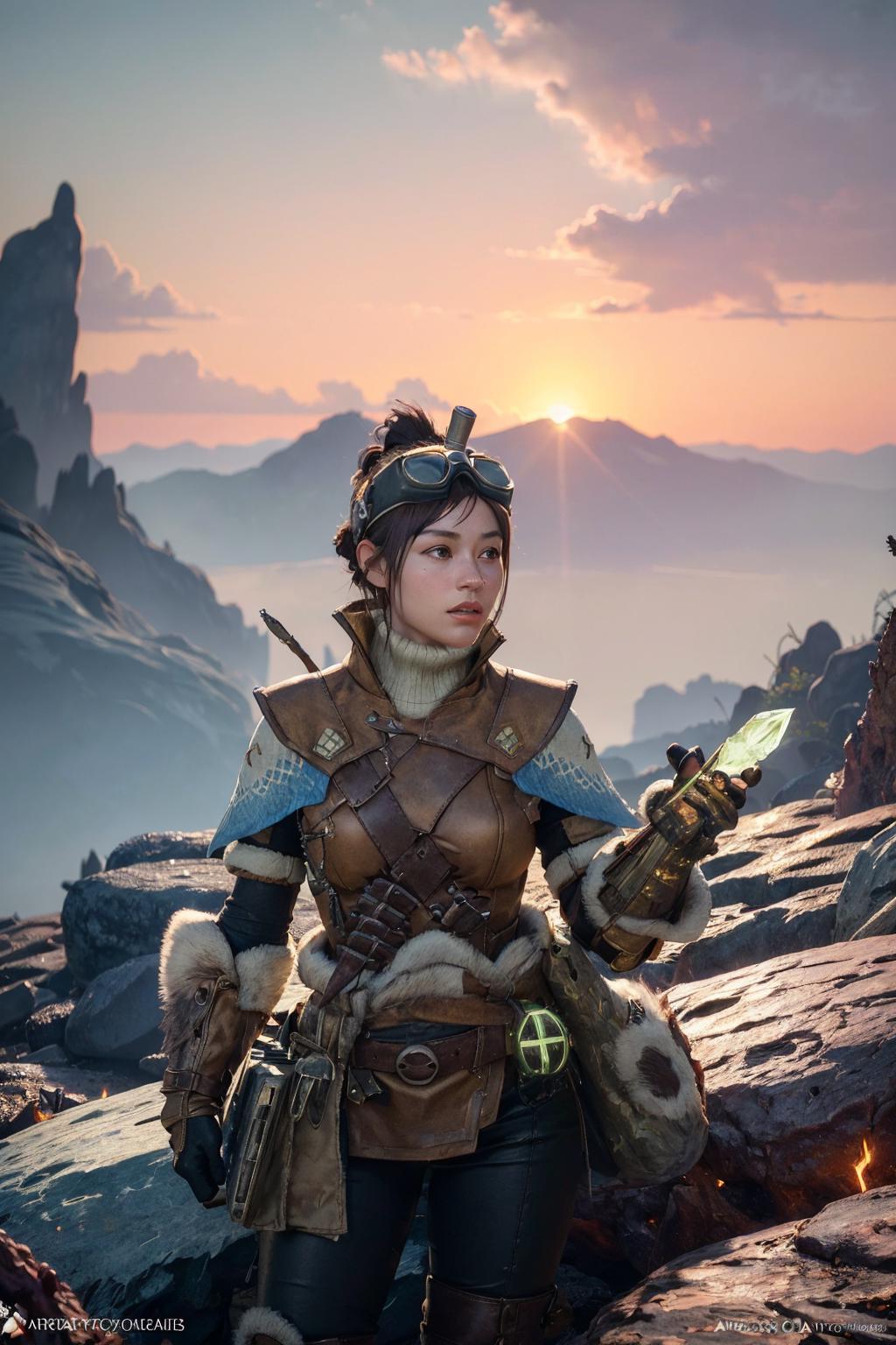 Default Outfit: goggles on head, capelet, boots, fingerless gloves
