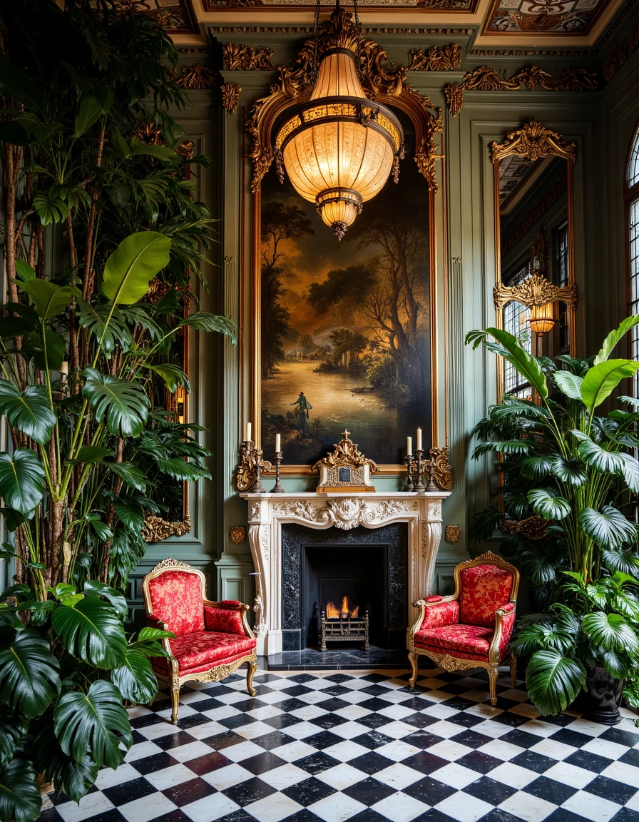 a photo of an ornate building entrance featuring intricate ironwork and stone carvings, with warm golden lighting illuminating the tall arched windows and blending with the elegant gray stone facade, surrounded by detailed curved decorations and leaves scattered on the ground in the style of thierry-lechanteur
