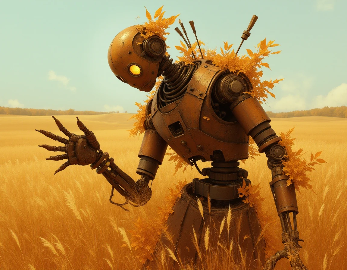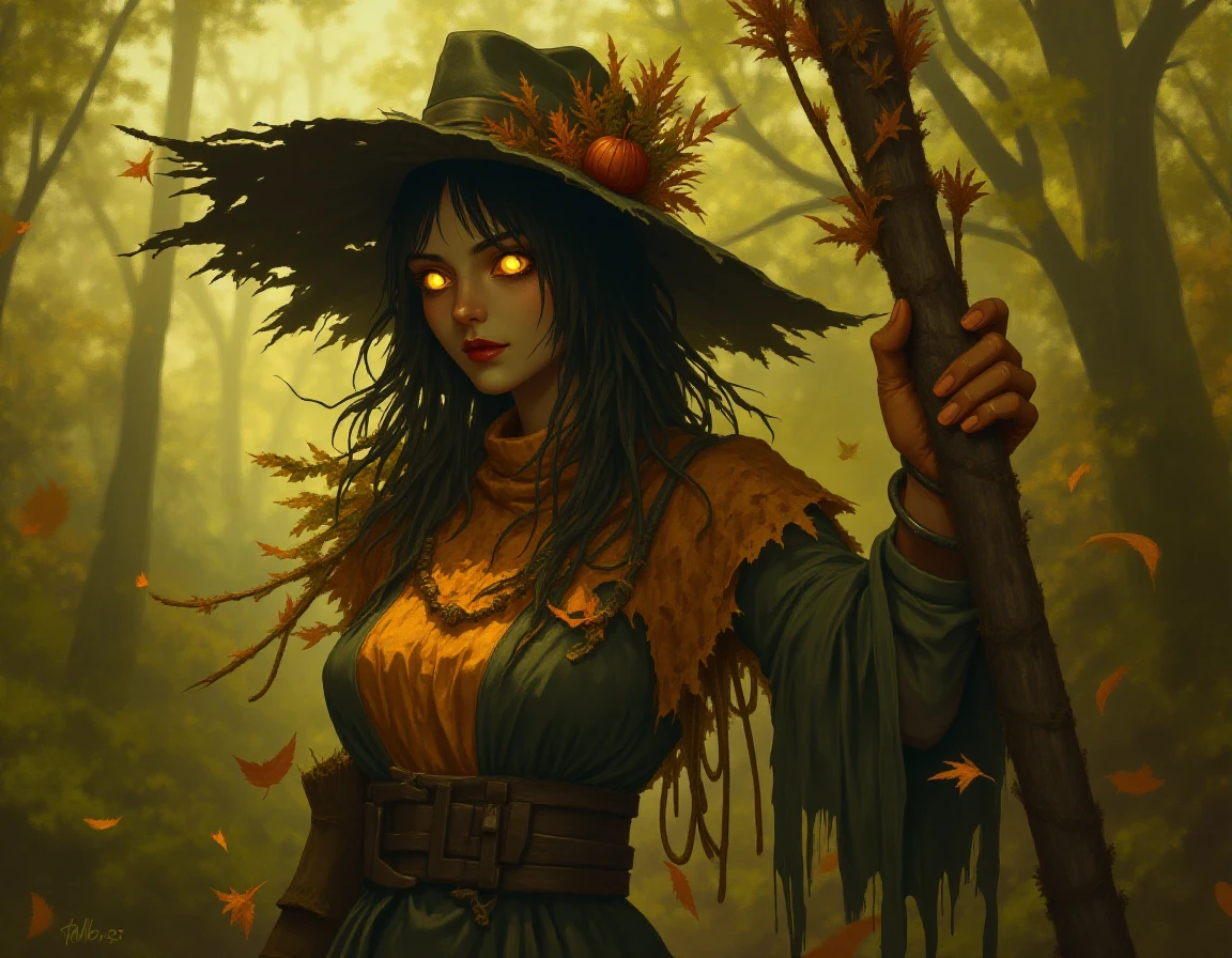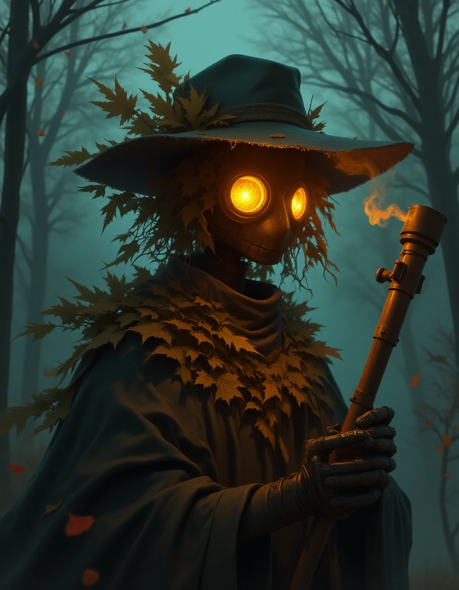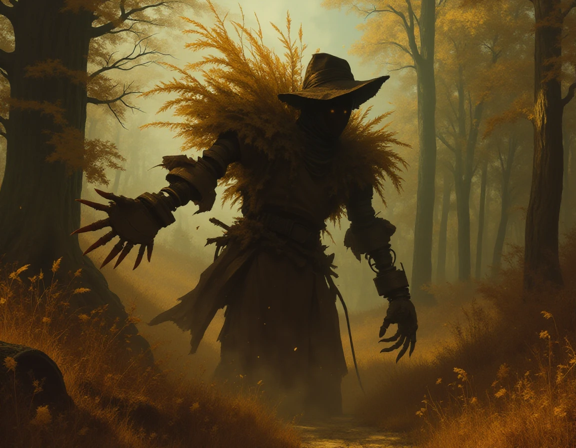 This concept takes the classic scarecrow and gives it a mechanical twist, merging steampunk aesthetics with the eerie charm of its rustic origins. With its patchwork metal plating, exposed gears, and glowing eyes powered by miniature engines, the Mecha Scarecrow stands as a haunting figure. Its design combines weathered burlap and tarnished brass with spindly, rusted limbs, evoking both menace and artistry. While its purpose might be to ward off threats, the unsettling blend of machine and scarecrow gives it a life-like quality, making it a natural fit for dark fantasy or horror themes. A crooked, gear-laden hat and metallic claws complete its ominous silhouette, ensuring it catches the eye on any scene it inhabits.