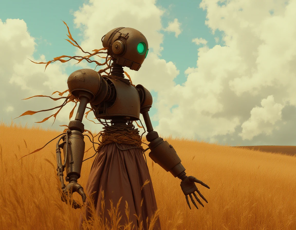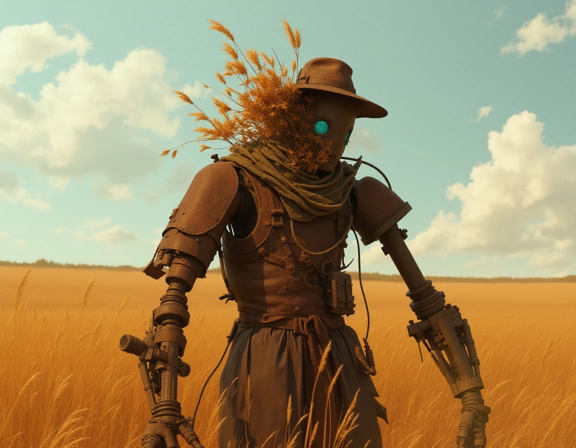 At lower strengths, this concept transitions beautifully into the realm of sci-fi, where the Mecha Scarecrow can serve as a mysterious automaton race. Its design suggests a blend of ancient technology and forgotten innovation, perfect for settings where rustic charm meets futuristic landscapes. The versatility of this LoRA allows for artistic exploration, creating figures that range from broken-down farm guardians to sentient beings searching for purpose. Whether for horror, steampunk, or sci-fi applications, this concept opens doors to intriguing and visually compelling storytelling.
