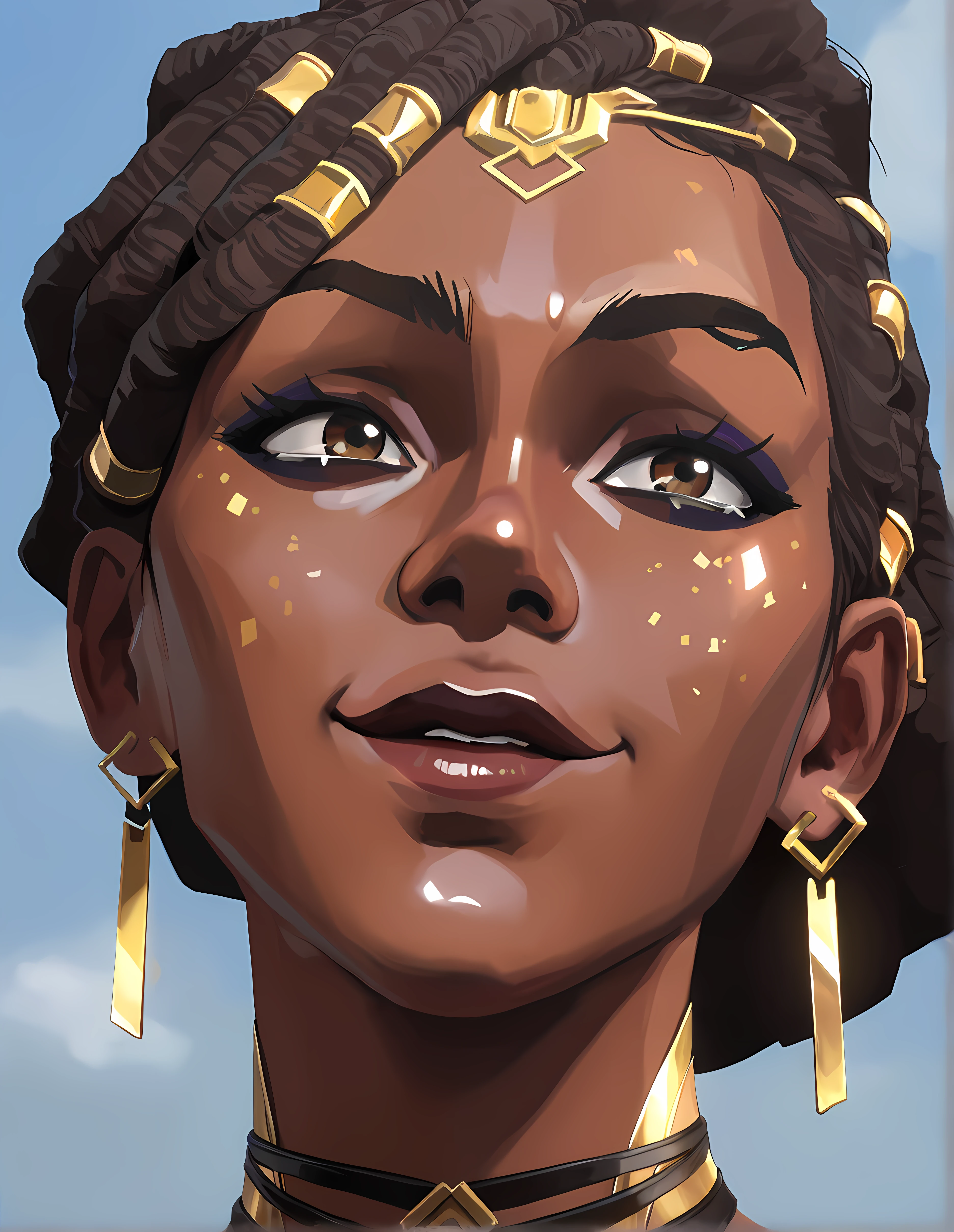 medardaar, dark skin, dark-skinned female, jewelry, earrings, dreadlocks, brown eyes