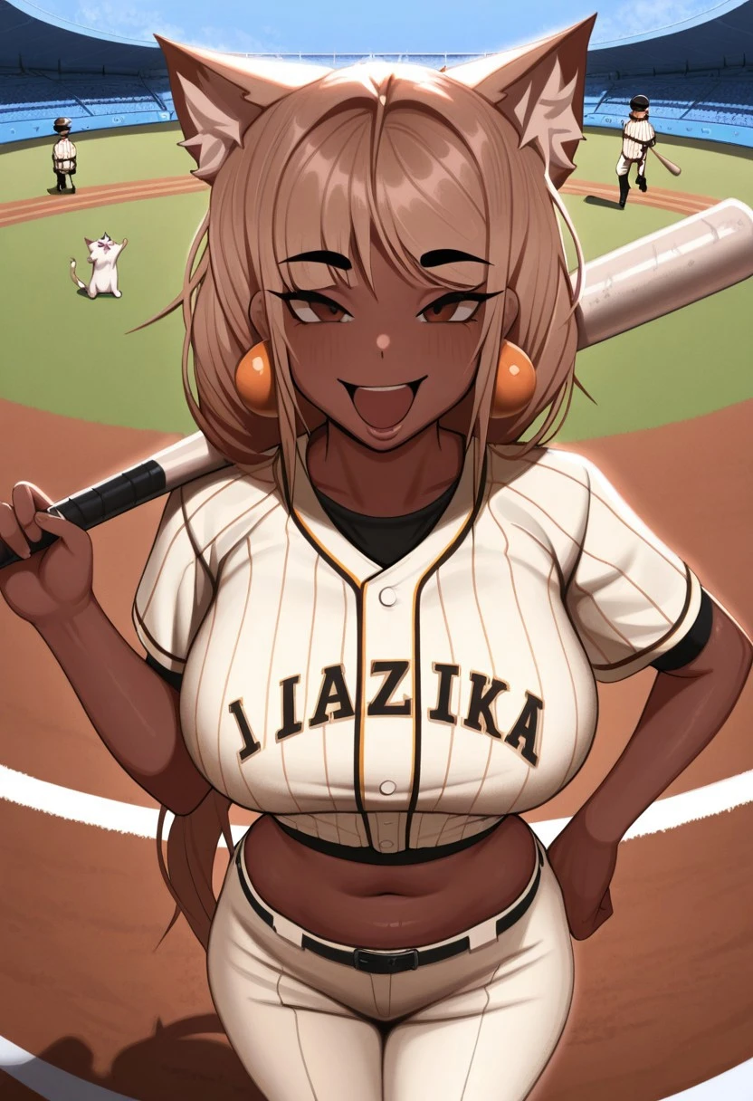 AvaKevB - female Kenomimi, with dark skin, brown eyes, long wheat-colored hair, and cyan jewelry in her human ears. +Cat tail