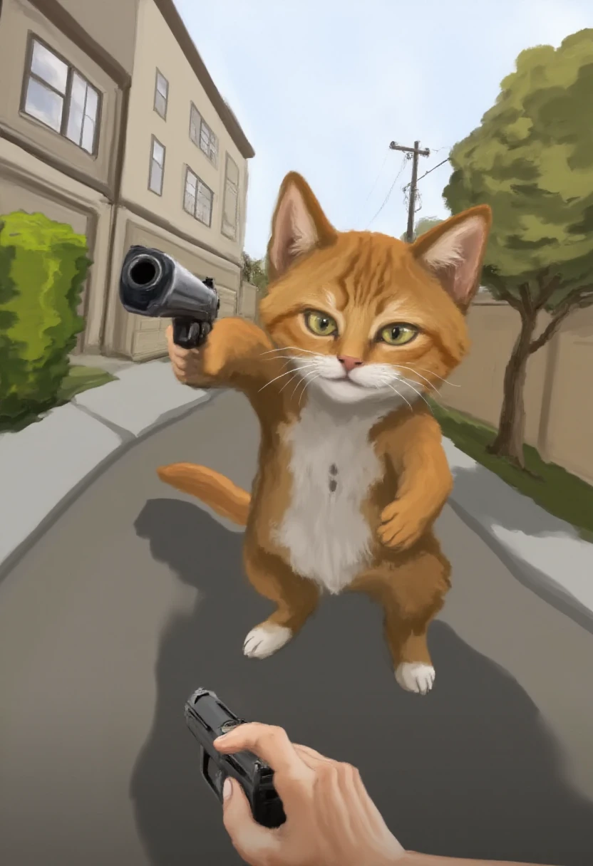Another experiment in using natural language captioning for a FLUX style, this time based on the dramatic art style presented by PilotRedSun in a few of his videos on YouTube - with a focus on the true classic: Not so fast.