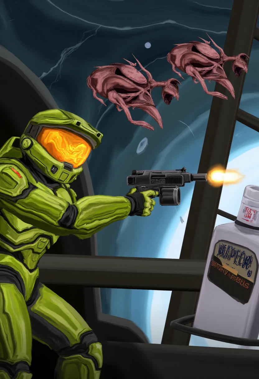 The image is a digitally created artwork featuring a stylized, exaggerated depiction of ...
