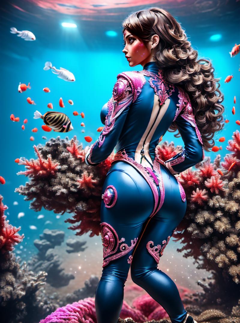 Use “underwater photo” to trigger the style of the trained LoRA. Append the recommended positive prompt terms from Realistic Vision, but skip the recommended negative prompts unless you are depicting human subjects underwater (which I have not tried).