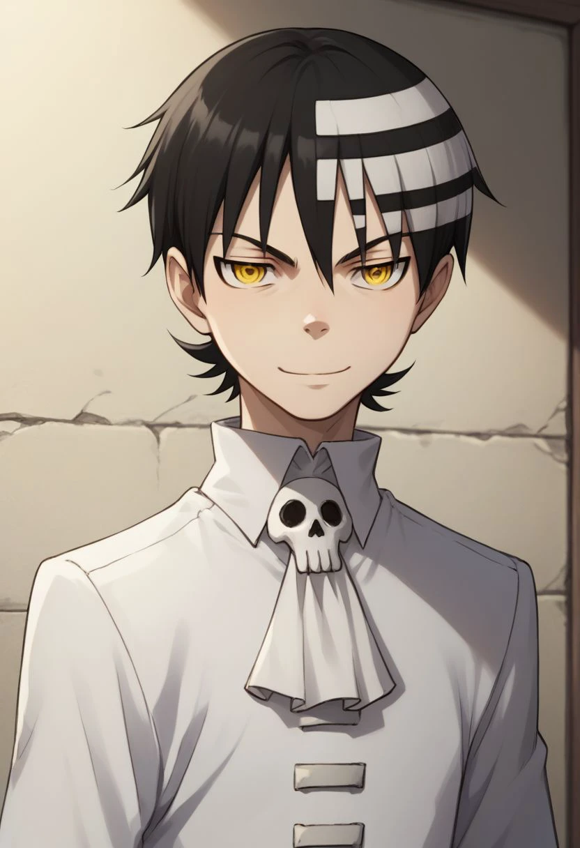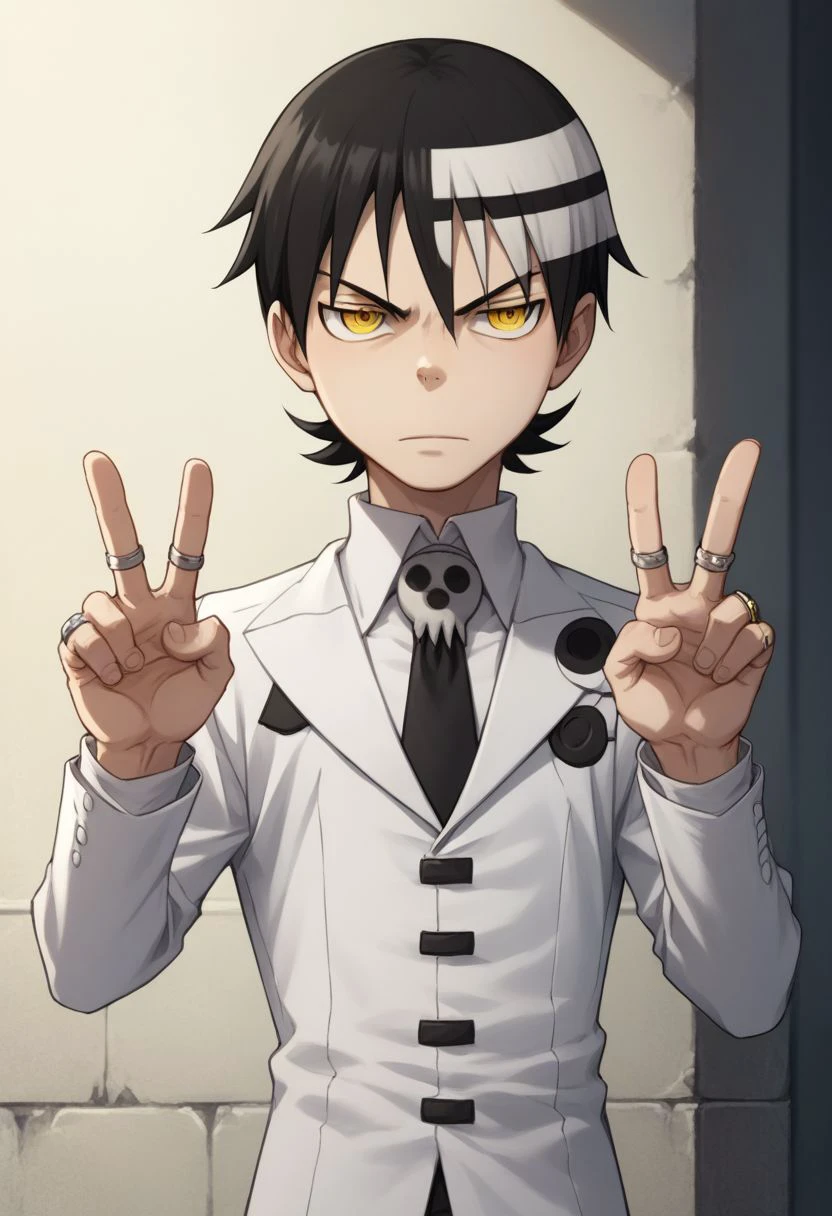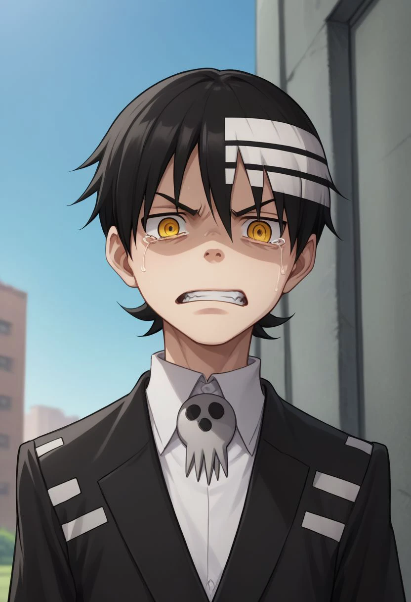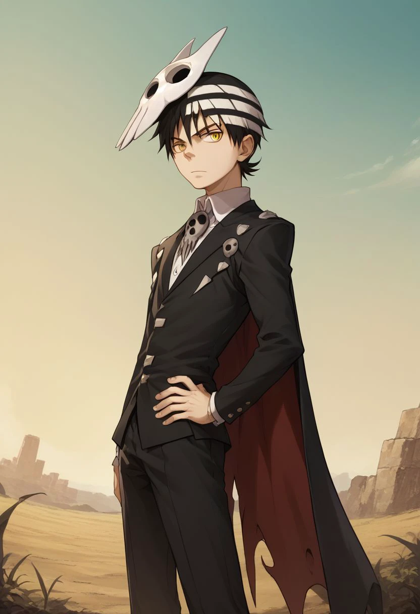 Suit: deathk, 1boy, male focus, black hair, yellow eyes, formal, suit, pants, short hair, black pants, shirt, shoes,