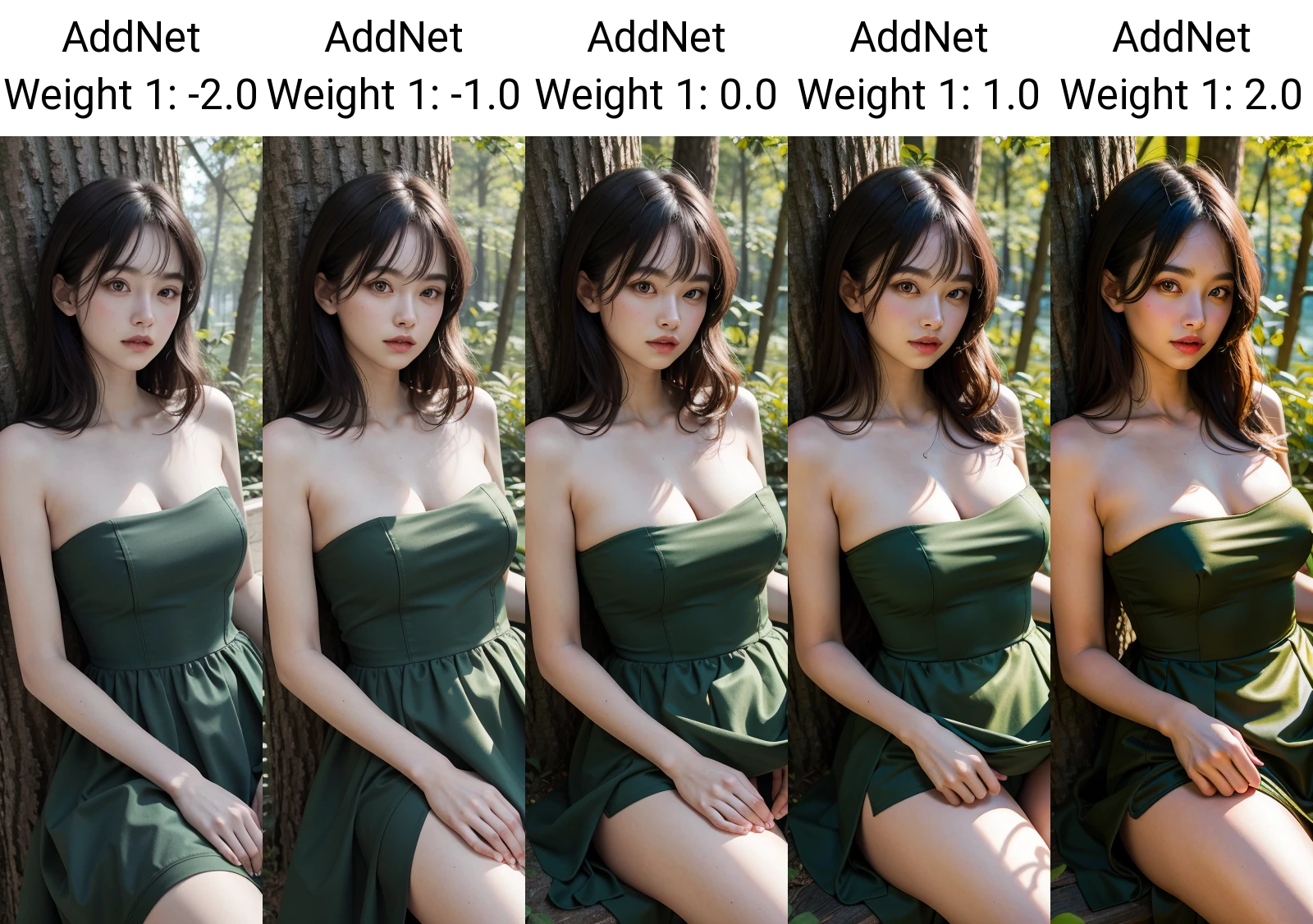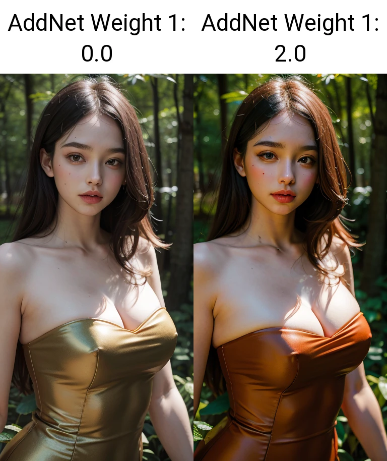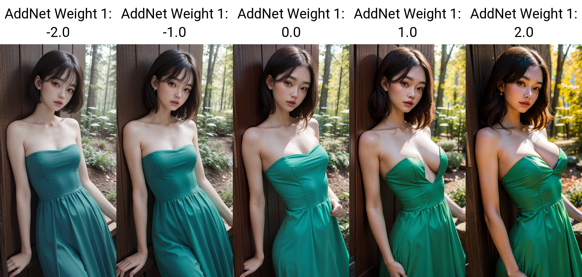 The recommended weight is about -3.0~3.0. The higher the weight is, the more colorful the images will be. (while the negative weight can decrease the saturation)