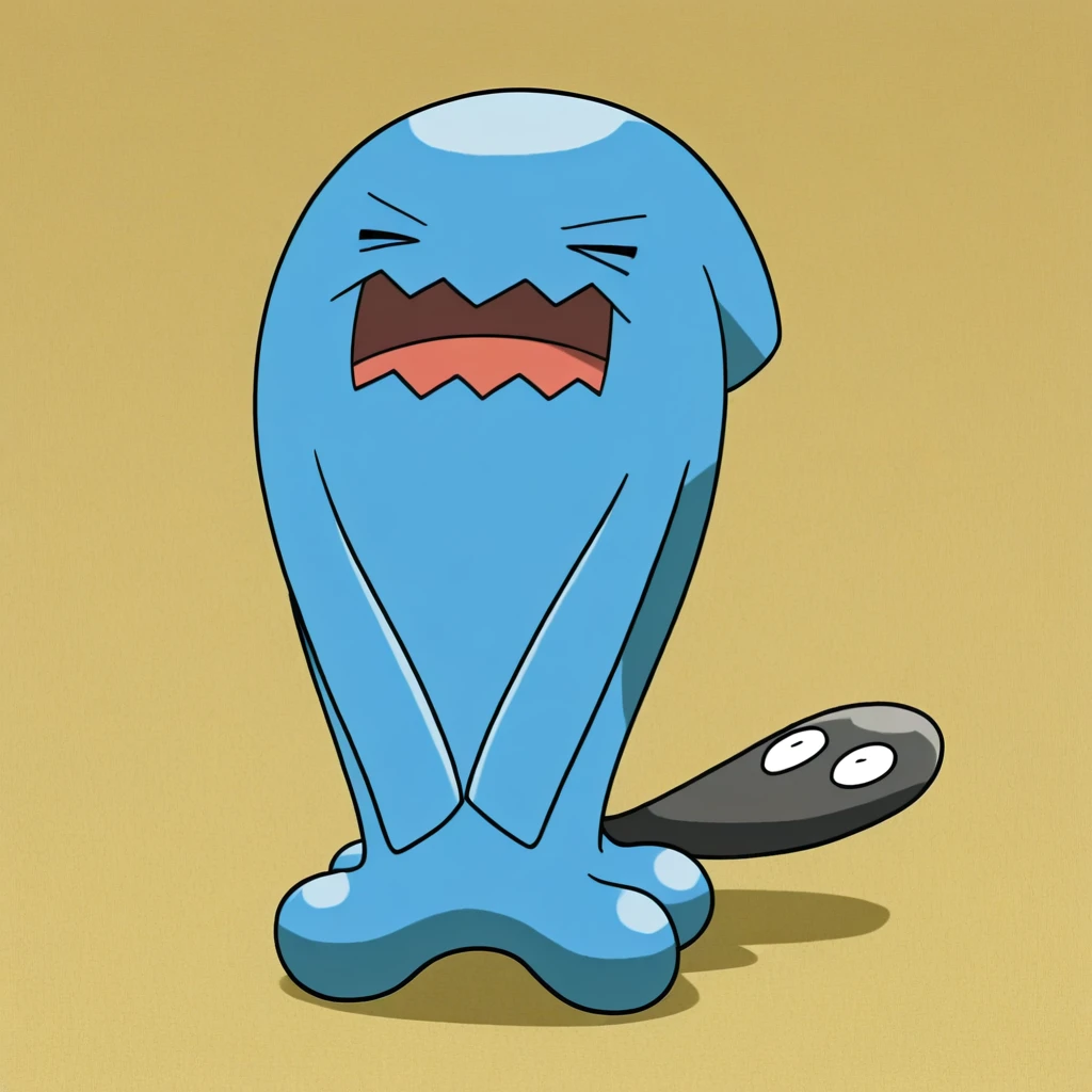 Wobbuffet, pokemon, pokemon (creature), boy, blue skin, living tail, closed eyes, 4 legs,