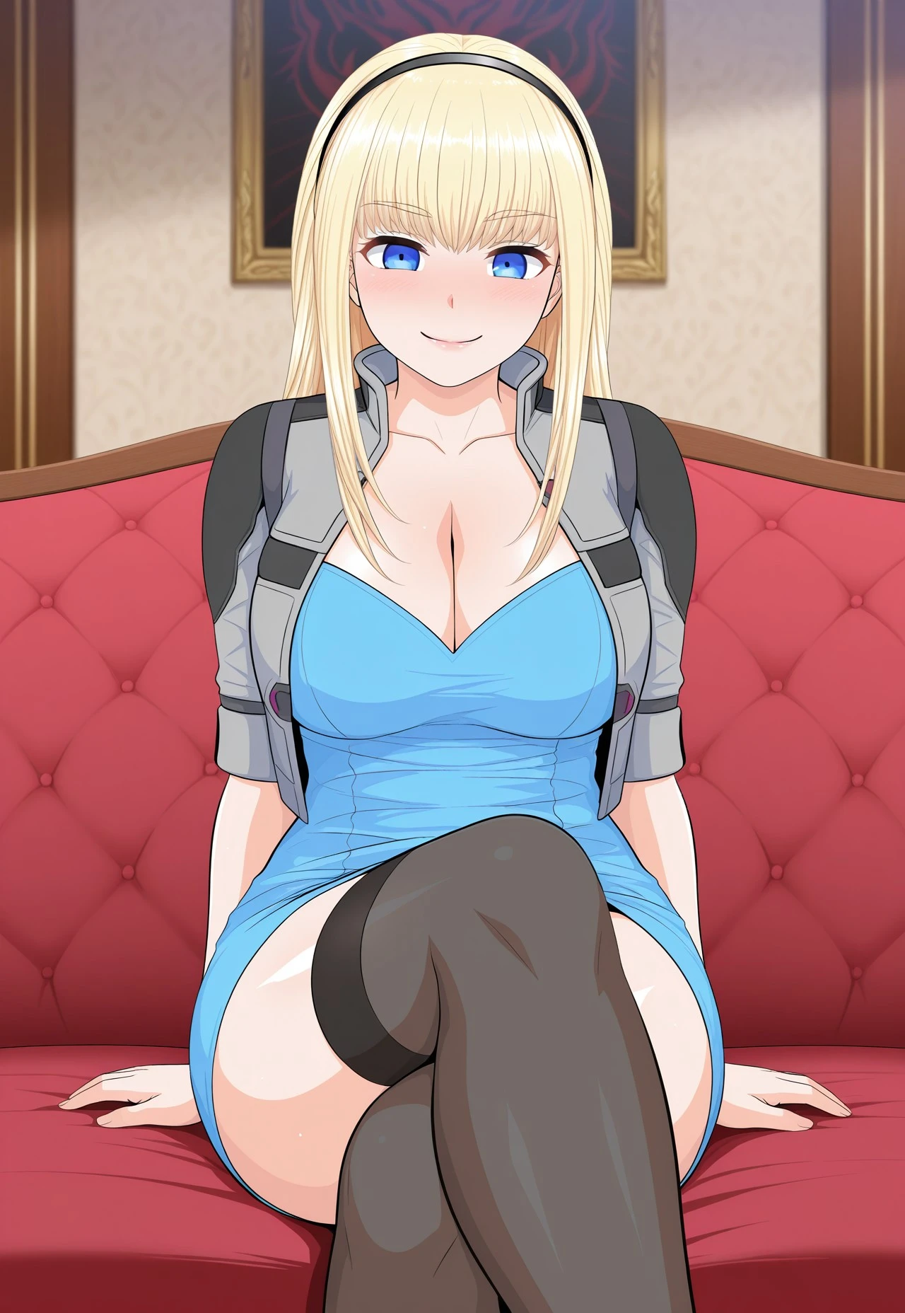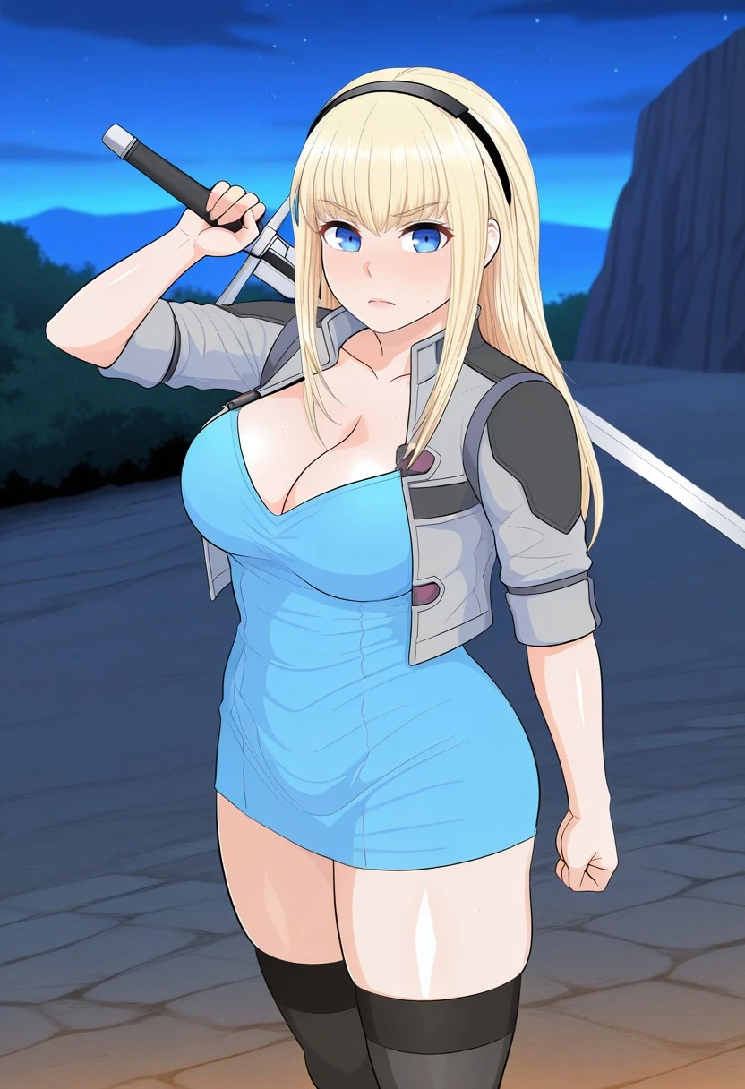 sheryl, 1girl, solo, blue eyes, blonde hair, long hair, large breasts,