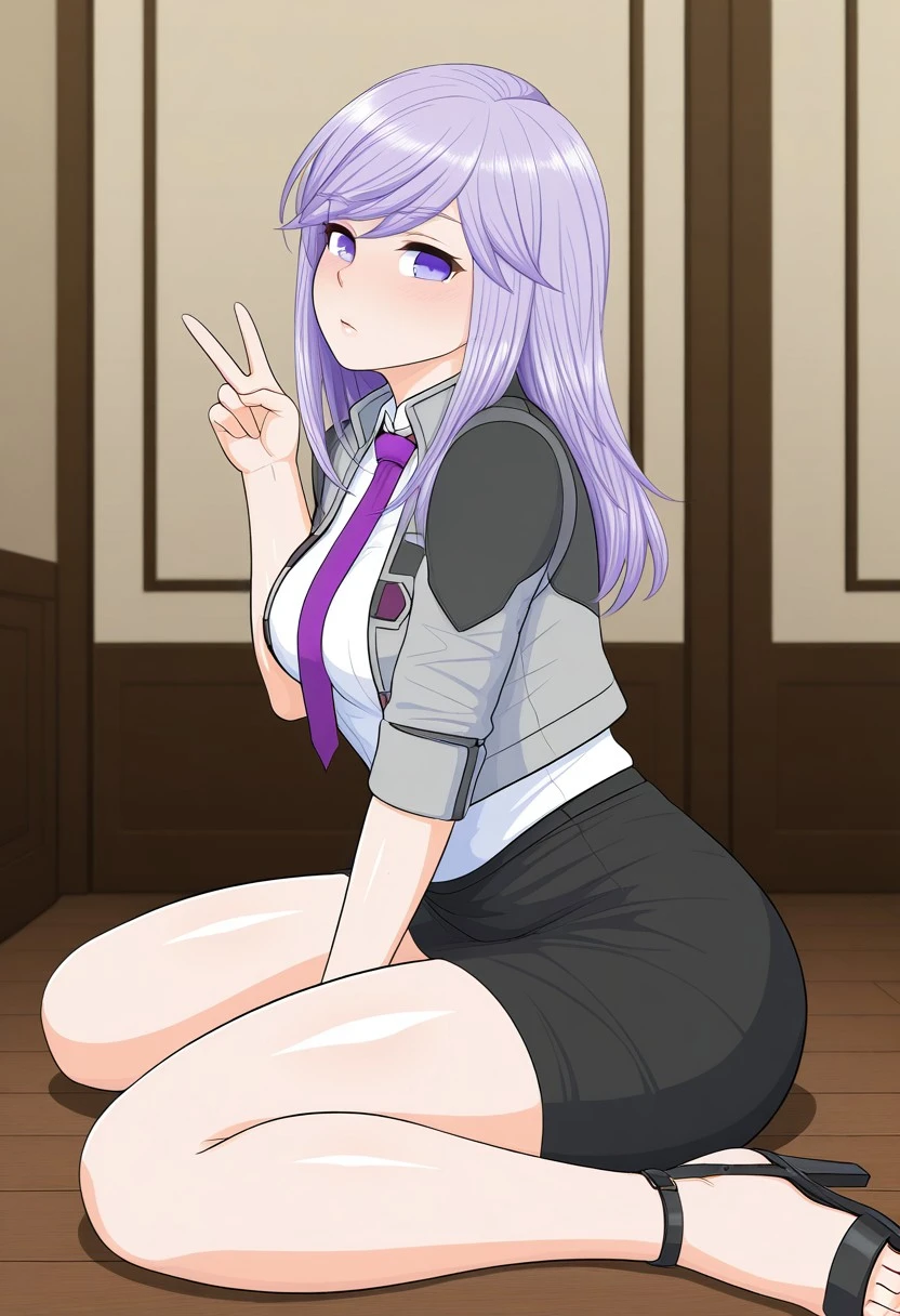 eleanor, 1girl, long hair purple eyes, purple hair, medium breasts
