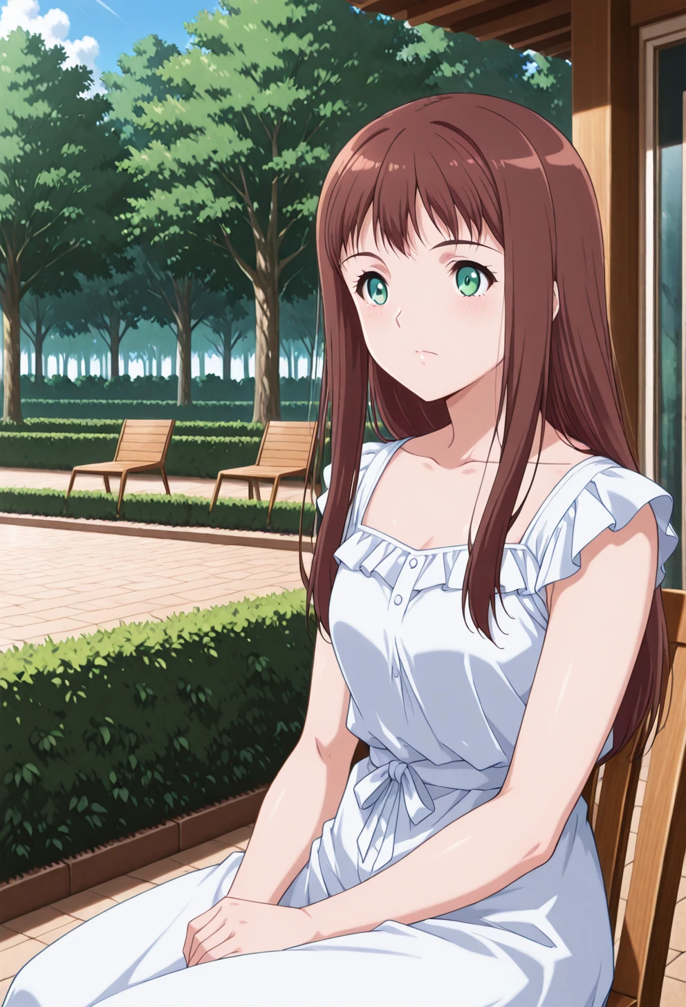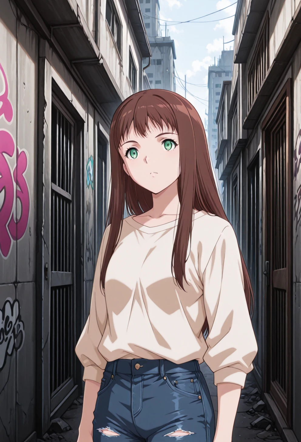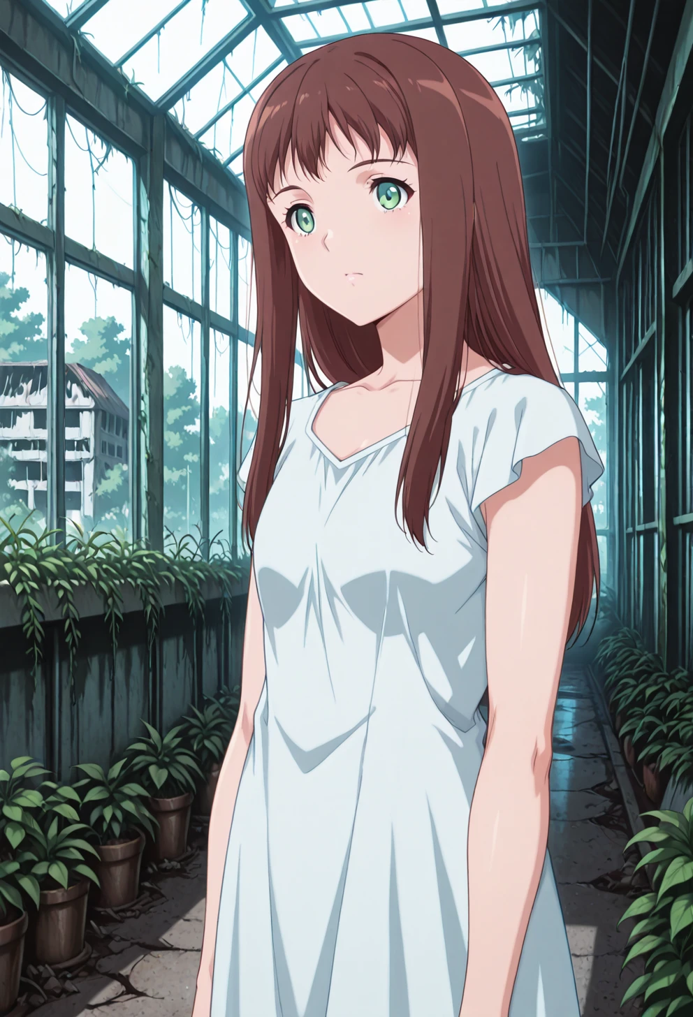 Trigger+CharTags: sysdeep_char19, 1girl, solo, long hair, brown hair, green eyes, straight hair