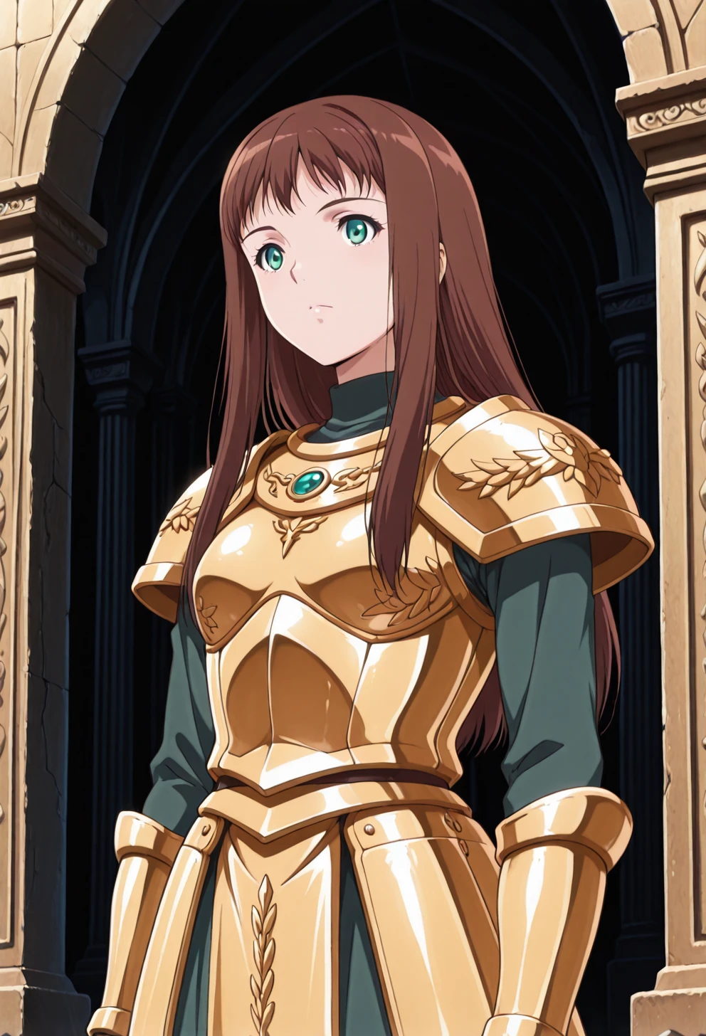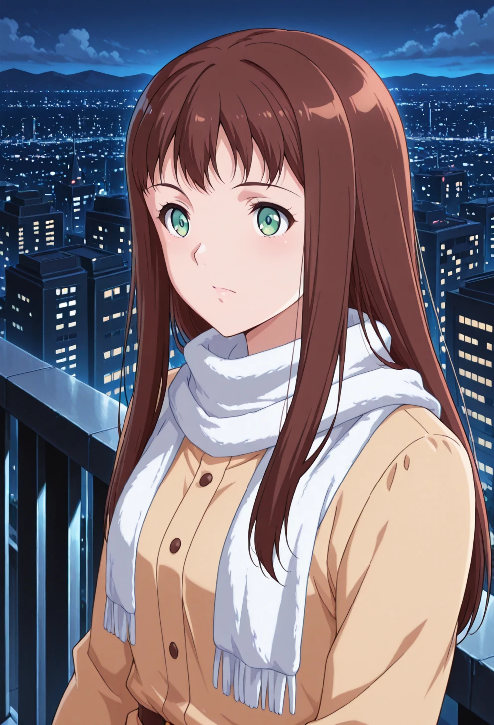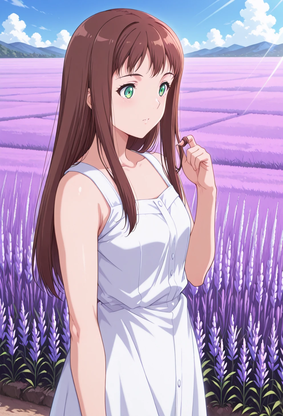 Trigger+CharTags: sysdeep_char19, 1girl, solo, long hair, brown hair, green eyes, straight hair