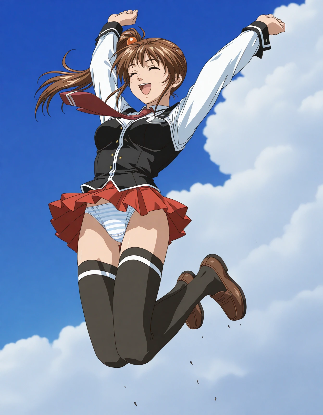 BB_Uniform, school uniform, black vest, white shirt, sleeve cuffs, red necktie, pleated skirt, red skirt, black thighhighs