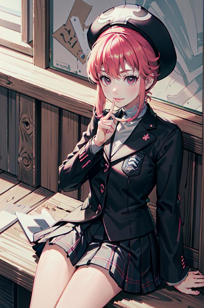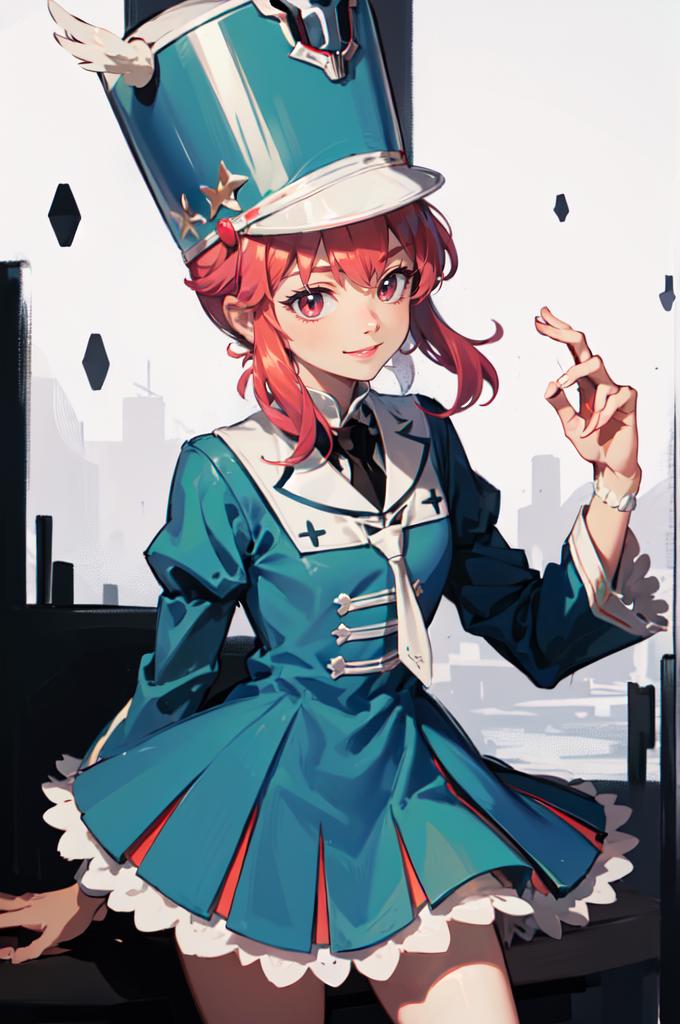For her school outfit use (jakuzure nonon), shako cap, uniform, tassel