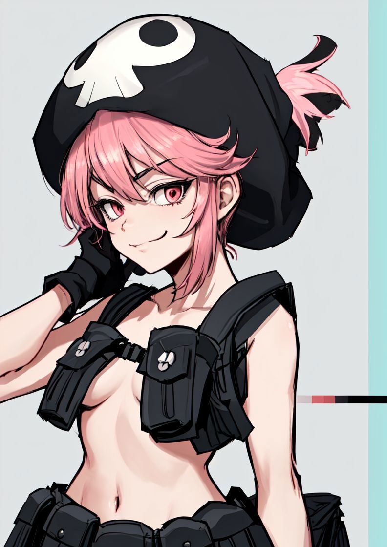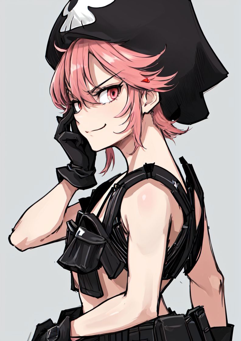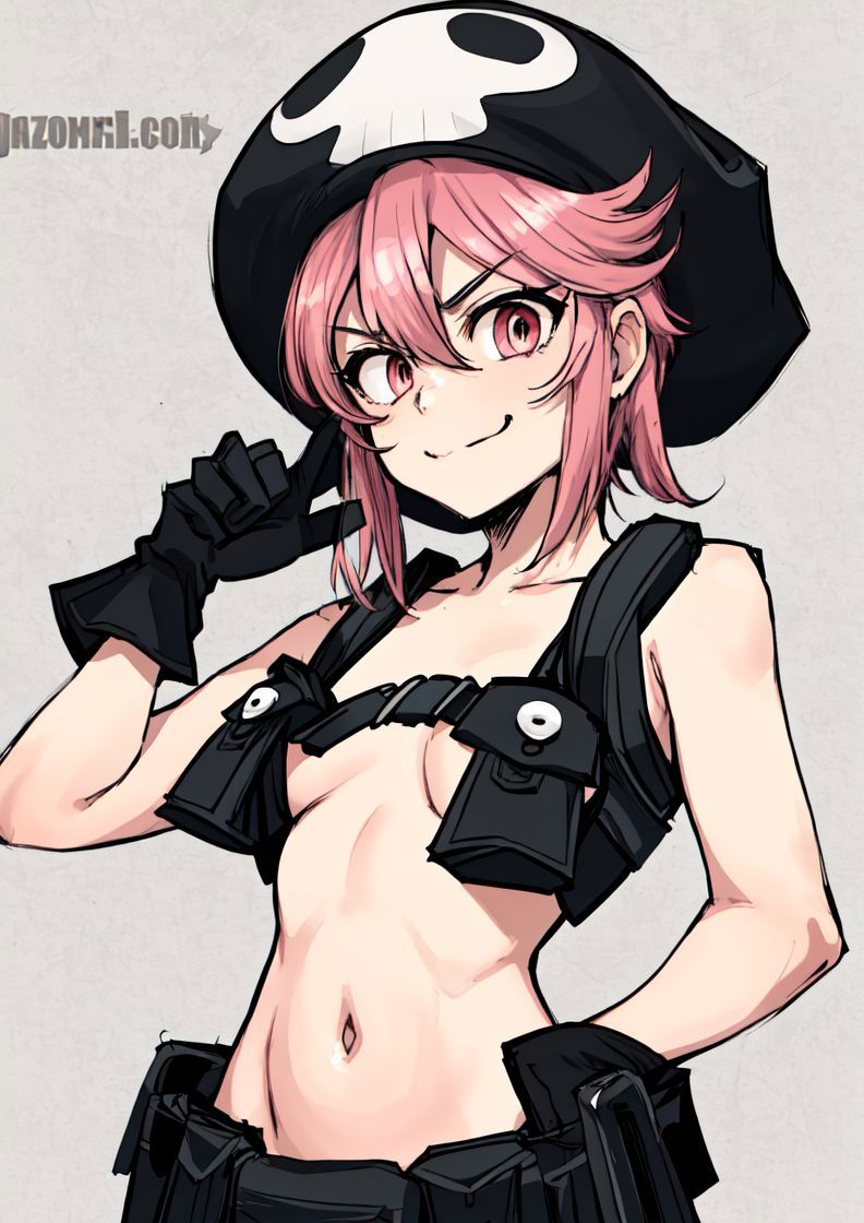 And for nudist beach one (jakuzure nonon), (black soft hat), (holster), (black gloves),(utility belt),(shoulder holster)