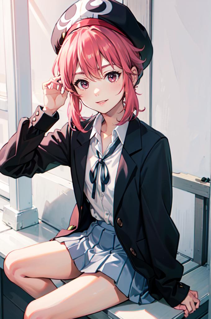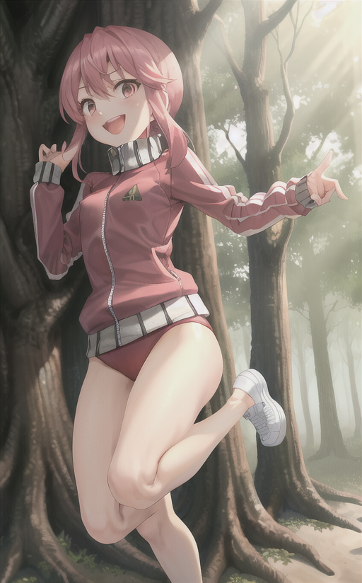 jakuzure nonon,pink soft hat, track jacket, red buruma