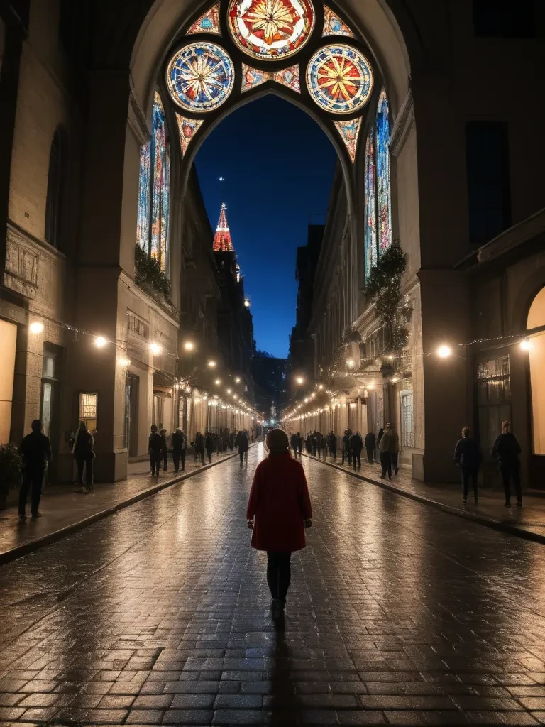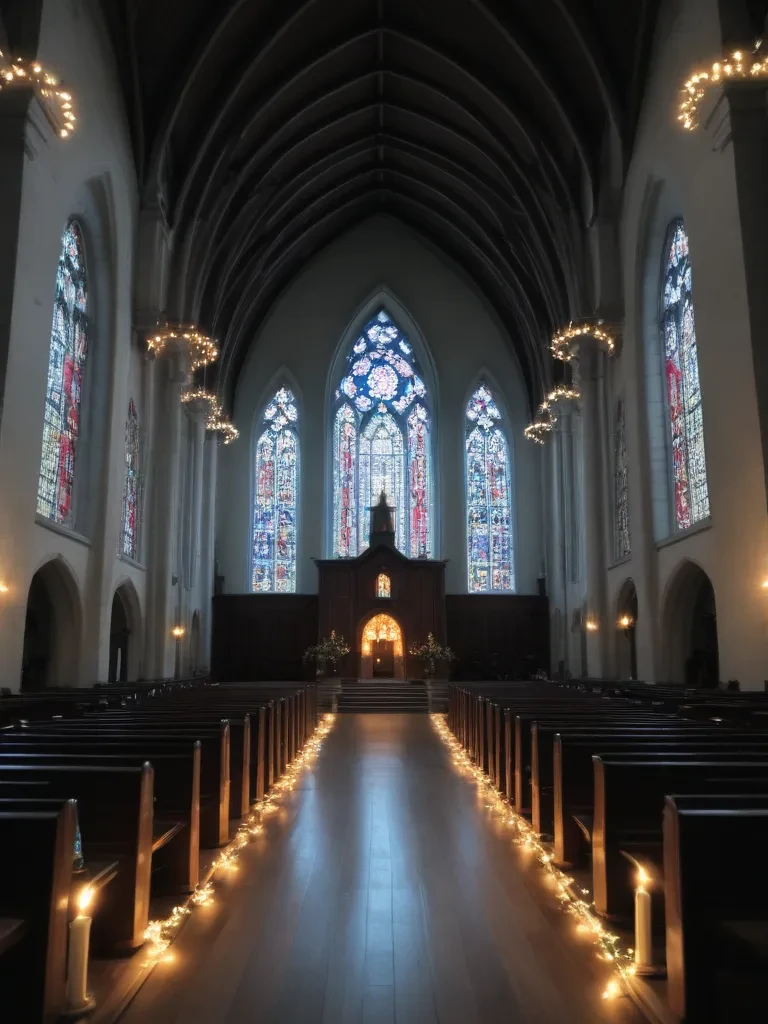 christmas, stained glass, street, road, outdoor, night, indoors, church,