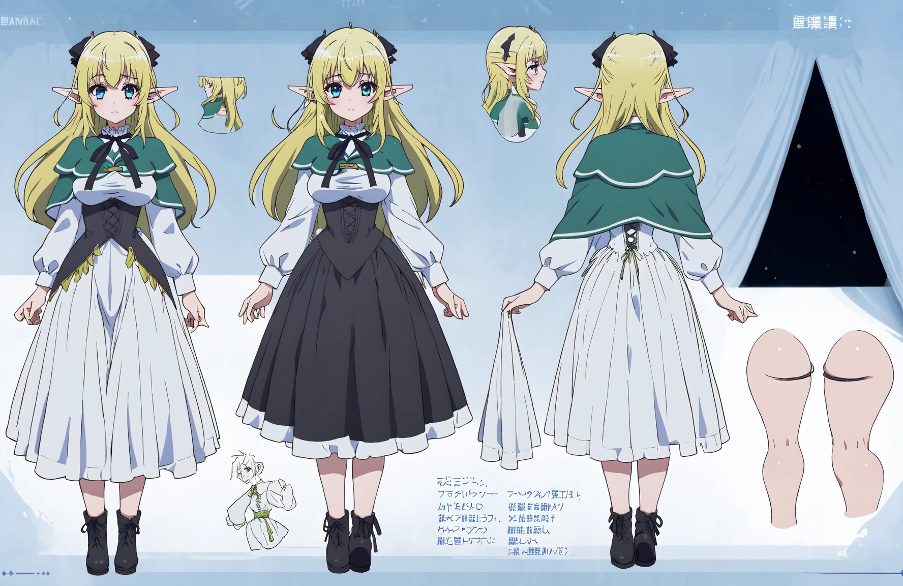 Appearance: 1girl, solo, long hair, braid, blue eyes, blonde hair, large breasts, pointy ears, elf, bangs