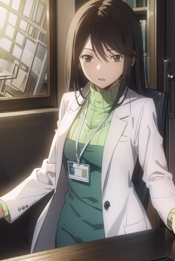 sweater, turtleneck, labcoat, green sweater,