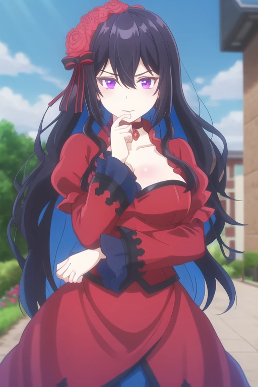 Trigger Words: scarlet castiel, long hair, multicolored hair, colored inner hair, blue hair, black hair, purple eyes