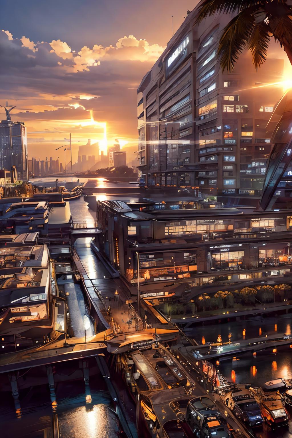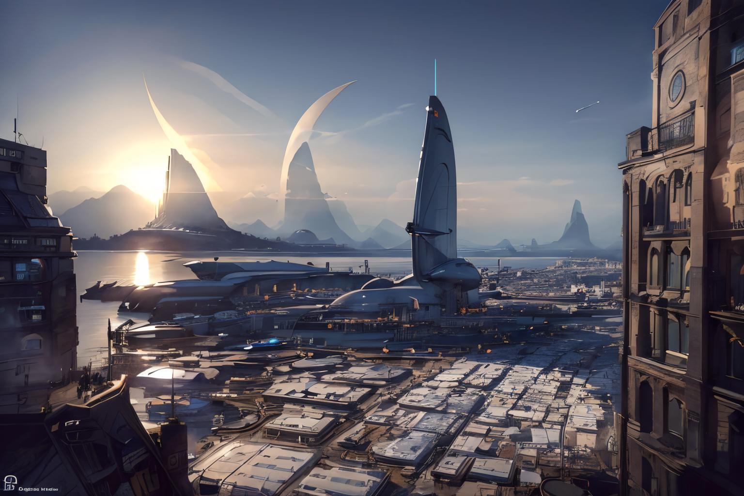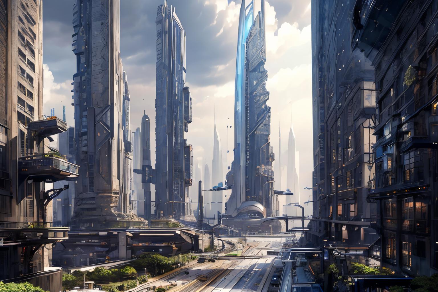 Try to do, a SyFy City Landscape Lora, generates pretty good images