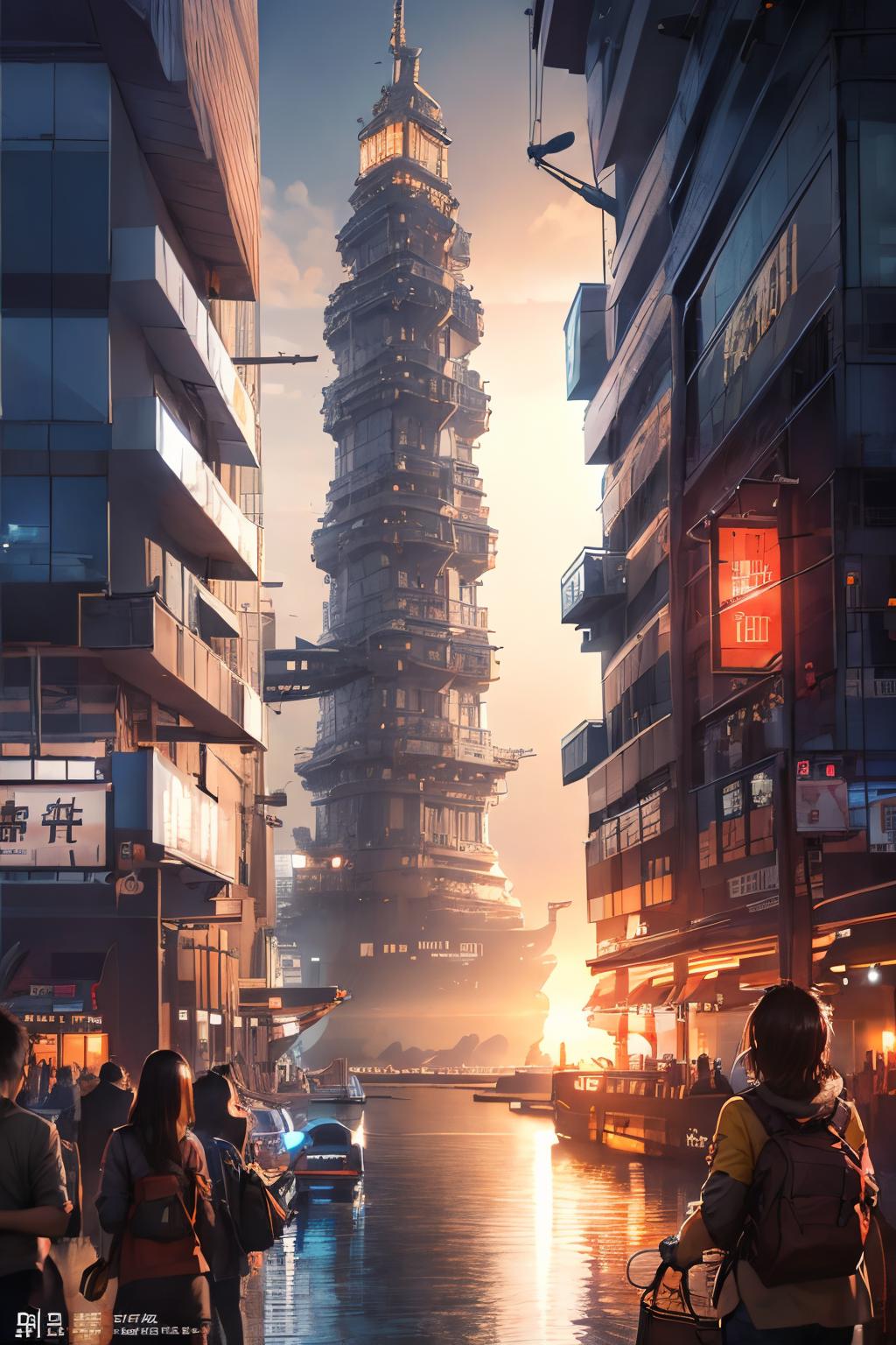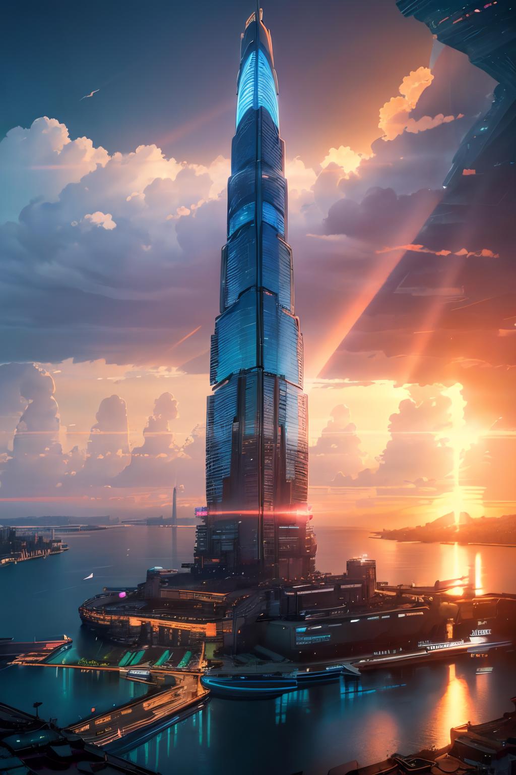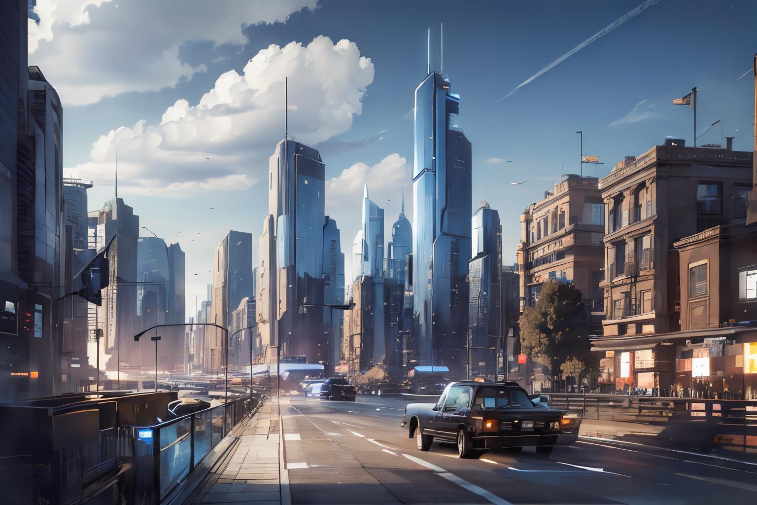 Try to do, a SyFy City Landscape Lora, generates pretty good images