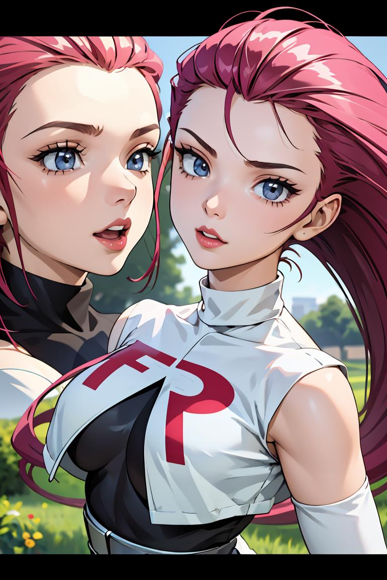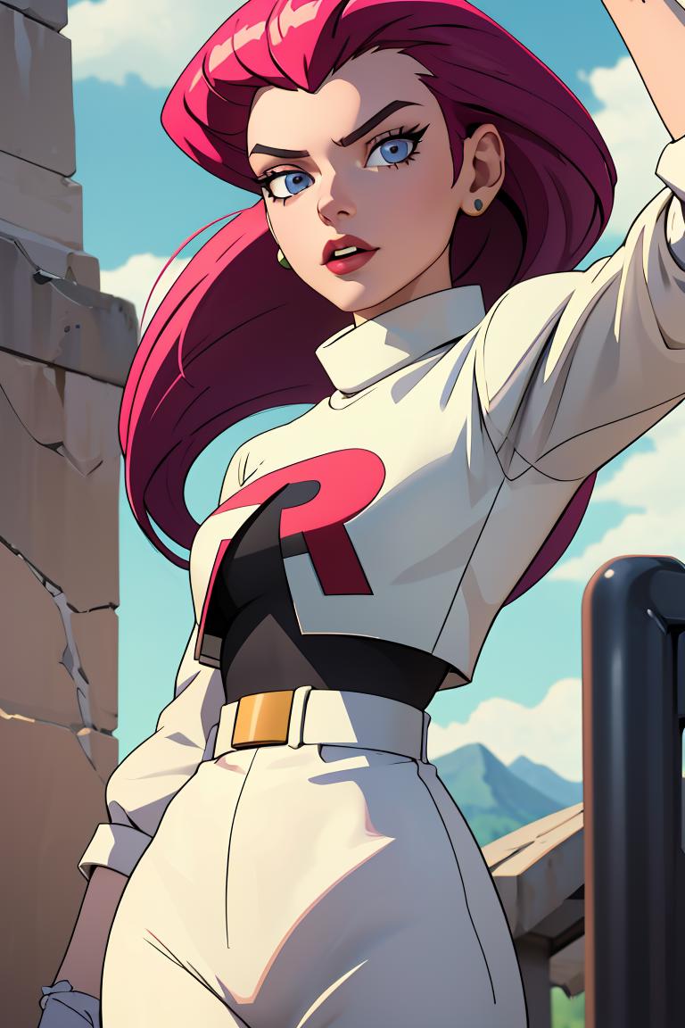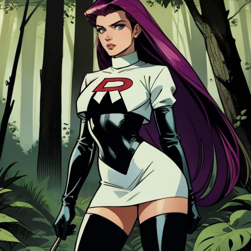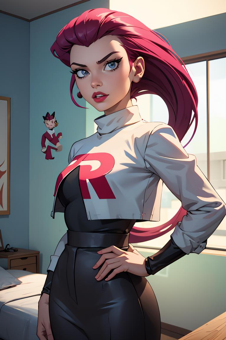 Outfit: team rocket, crop top, elbow gloves, miniskirt, thigh boots