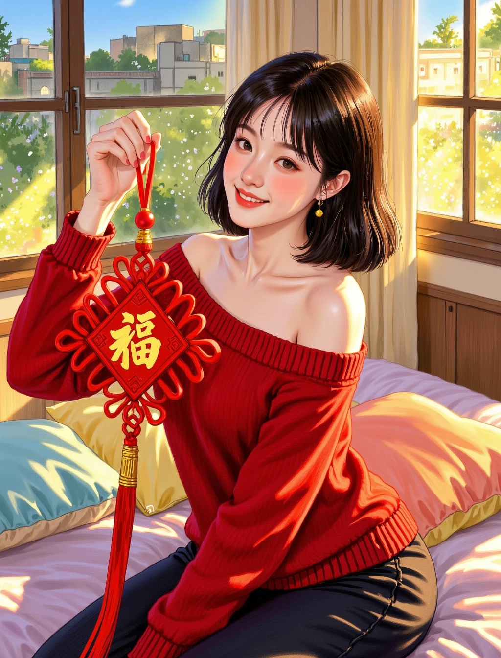 This is a portrait generated LoRA model specially designed for Chinese New Year. Adopting a semi realistic hand drawn texture illustration style, the main image leans towards youthful vitality, vigorous vigor, and trendy fashion, perfectly integrating traditional Chinese New Year flavor with modern artistic beauty. Particularly skilled in generating New Year scenes with the character "福" in hand, allowing you to easily create a 2025 New Year's joyful scenery full of New Year flavor, and use it as a New Year avatar.