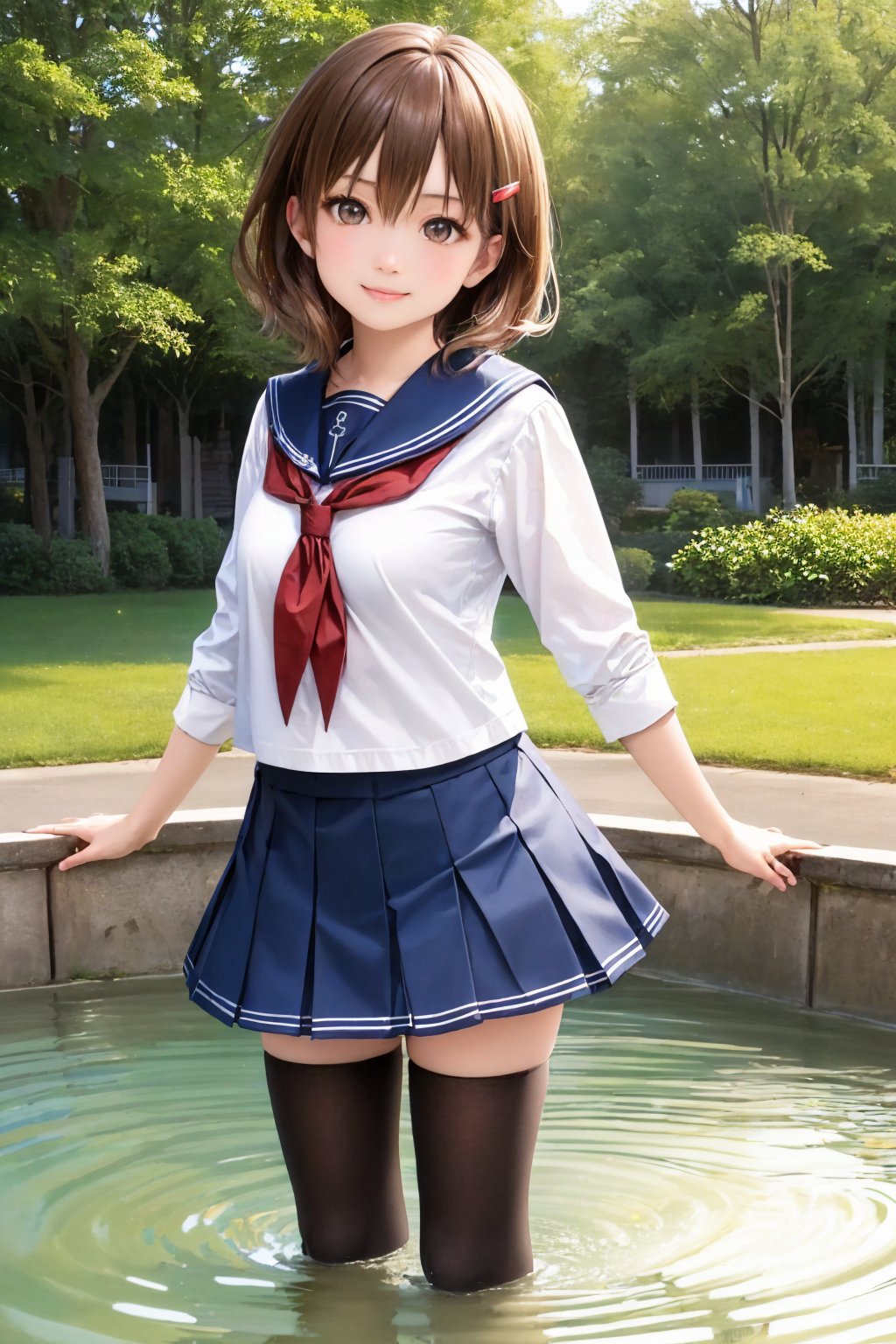 Default Outfit: school uniform, serafuku, skirt, thighhighs