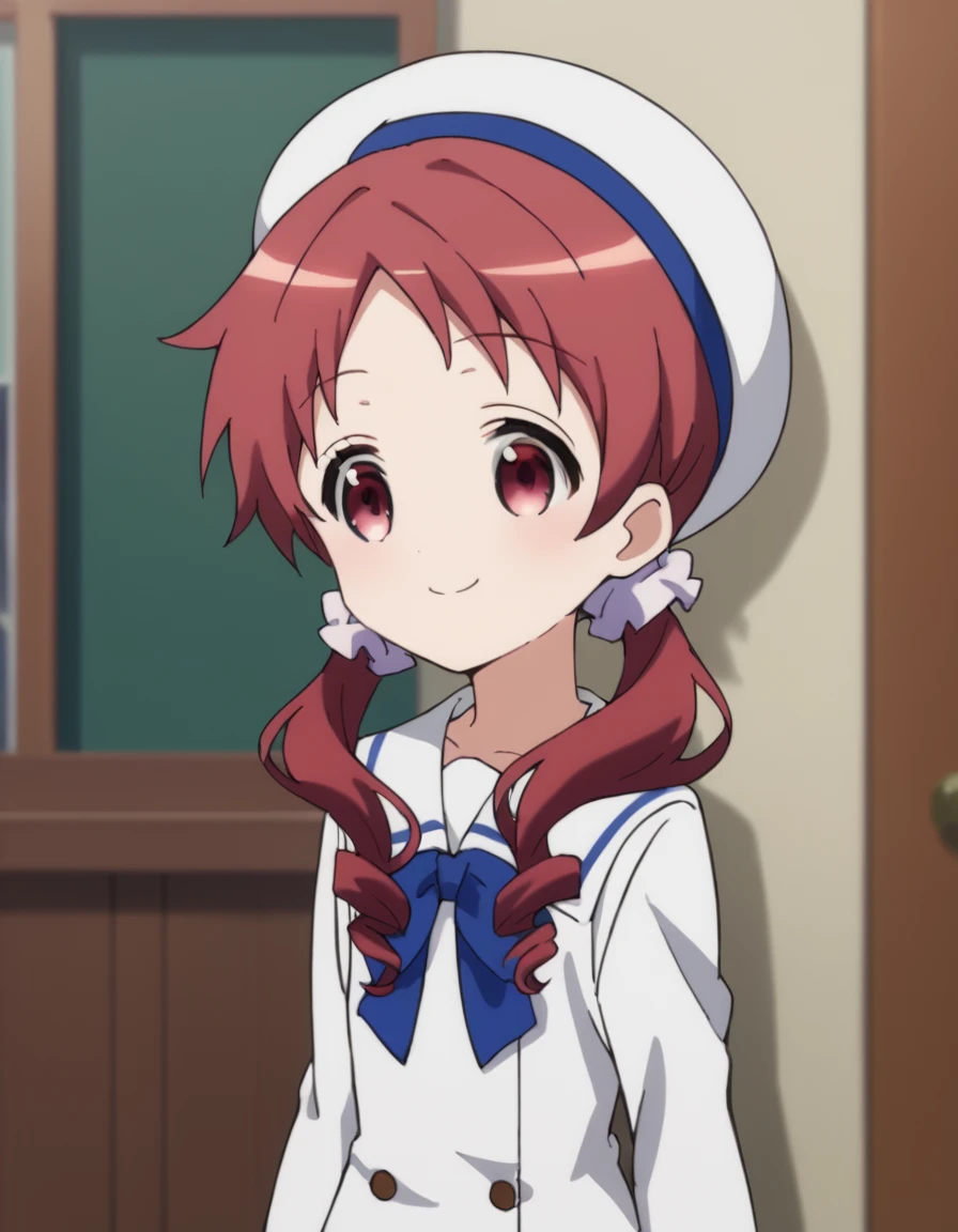 school uniform, white dress,beret,white beret