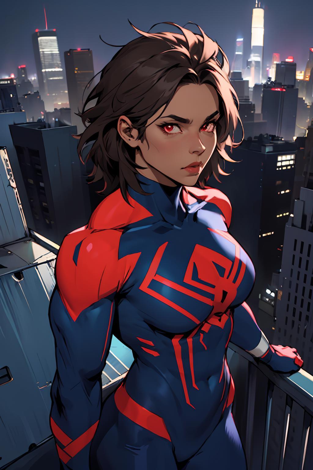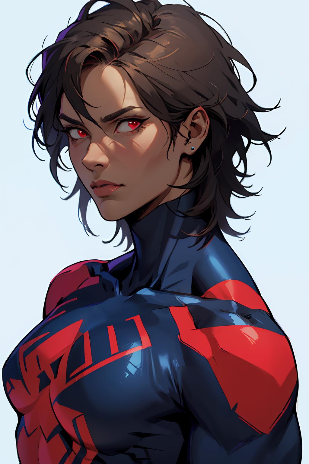 In negative add "Torn bodysuit, cape" or "claws, spider web, spider web print, arm blade" if they gen a bit extreme. The spider logos bleed a little into other outfits but I have yet to figure out a good fix but lowering weight can help.