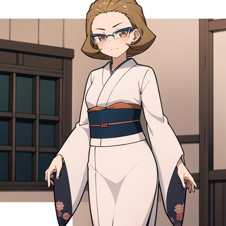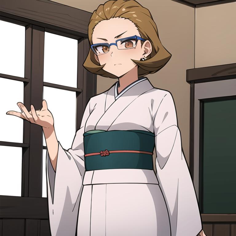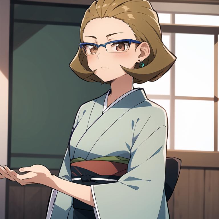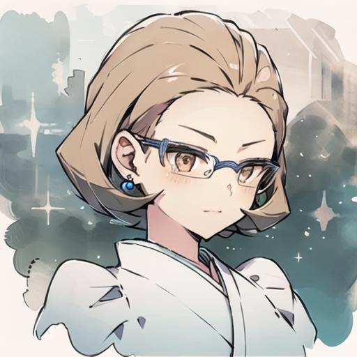 Hair/Characteristics: short hair, brown hair, glasses, earrings, jewelry, semi-rimless eyewear, brown eyes, eyes, eyes visible through glasses