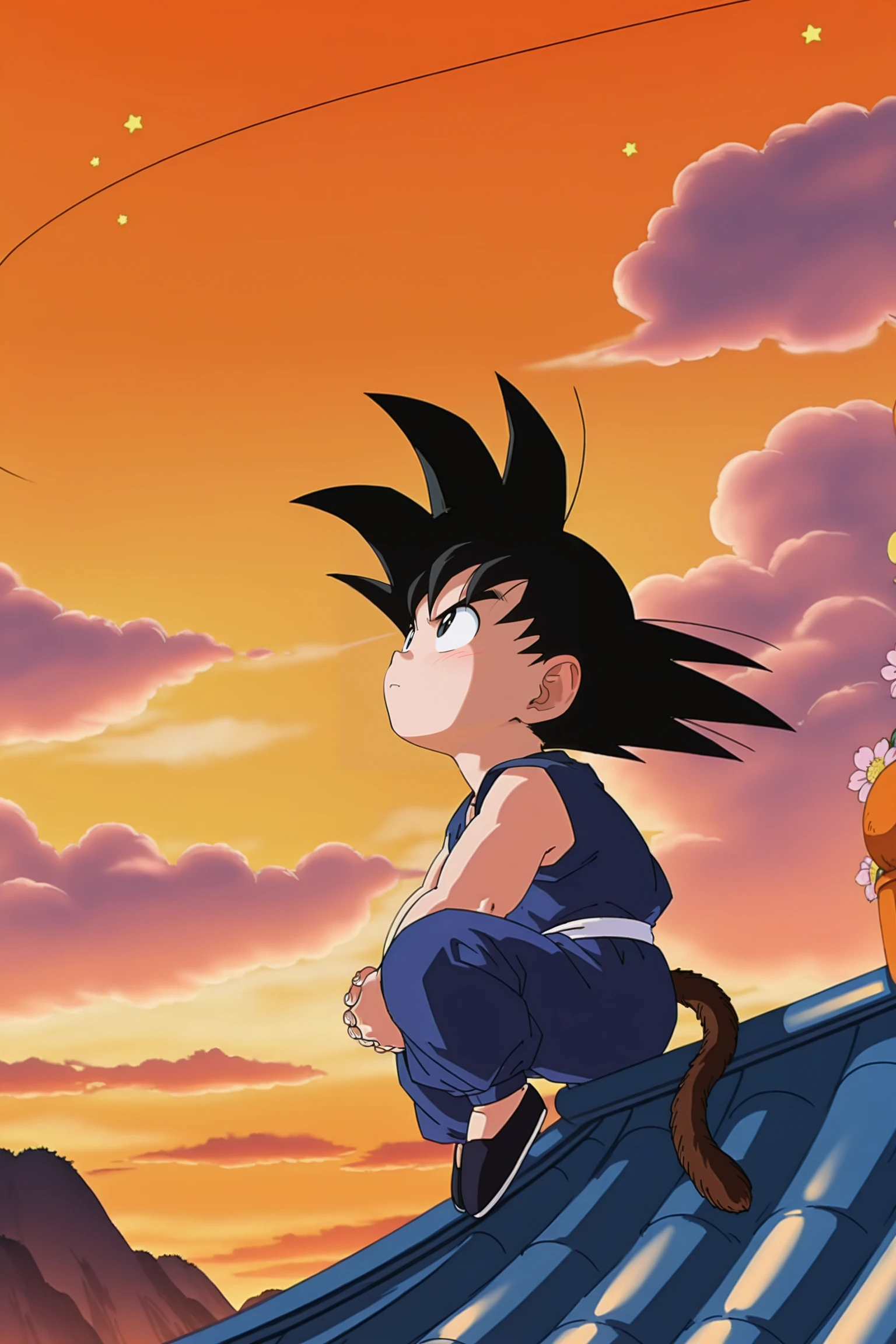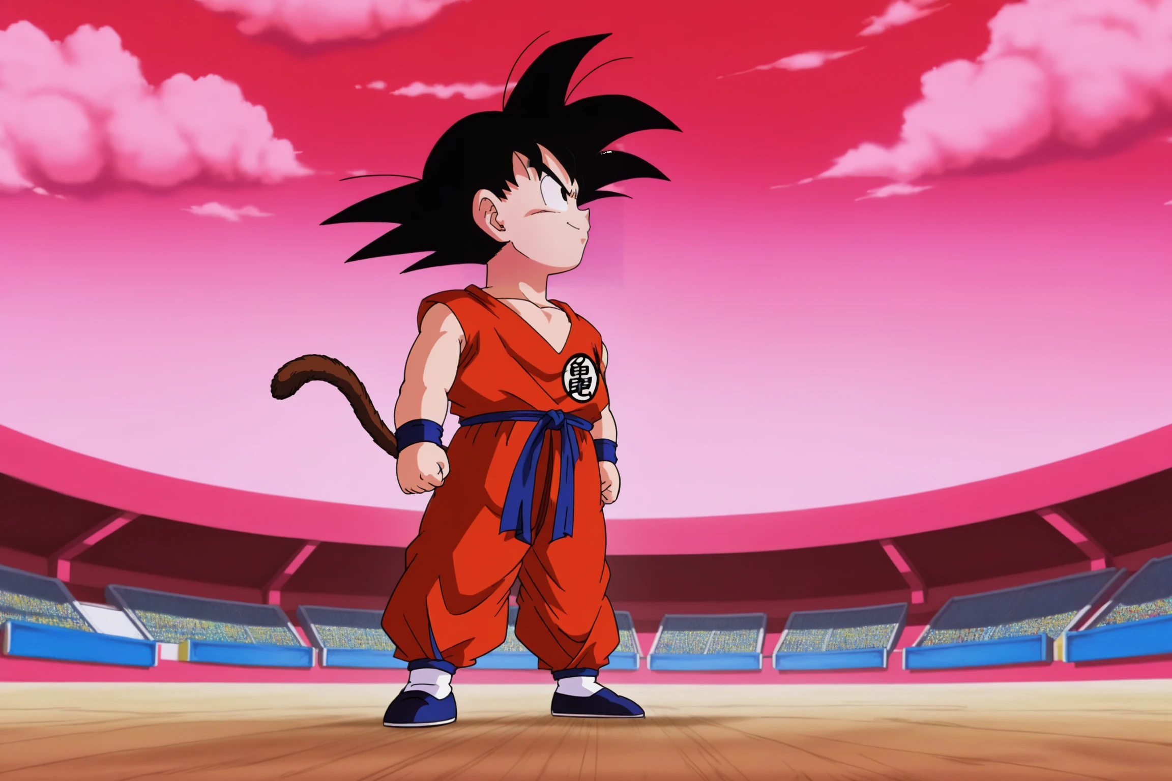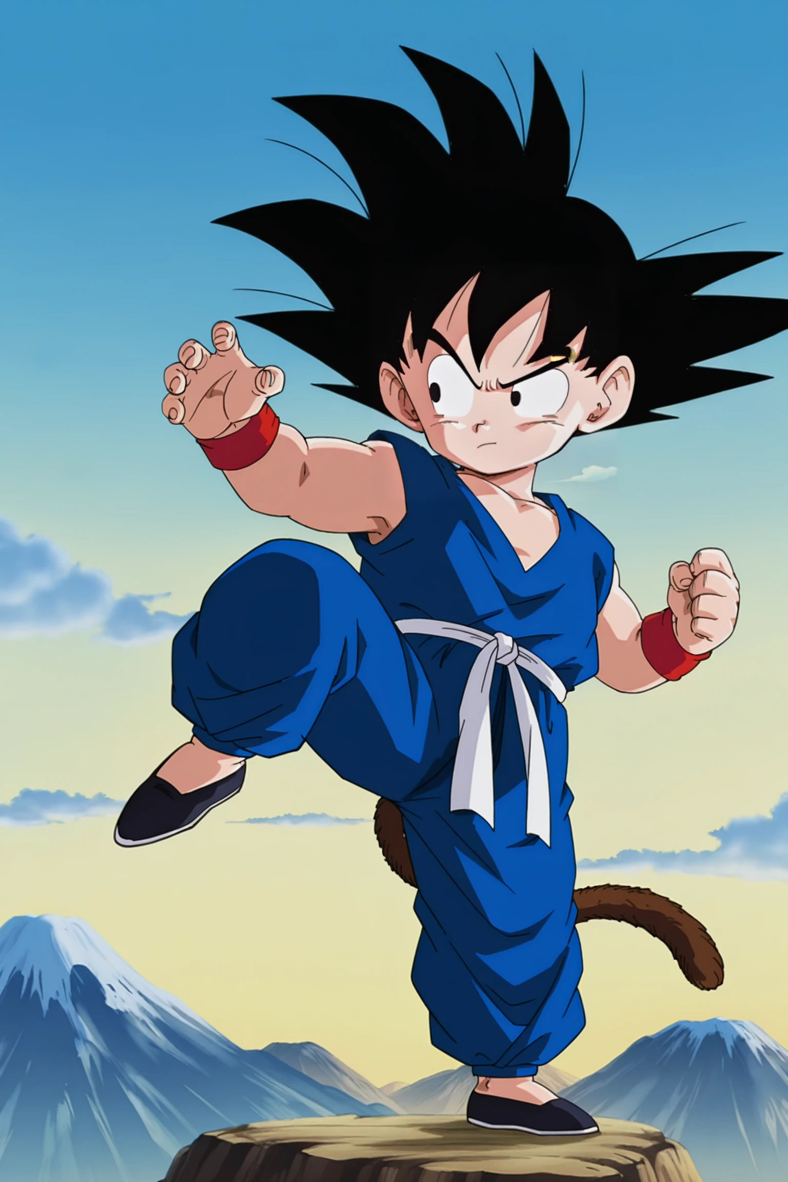 son goku, child, black hair, black eyes, spiked hair, monkey tail, male child,