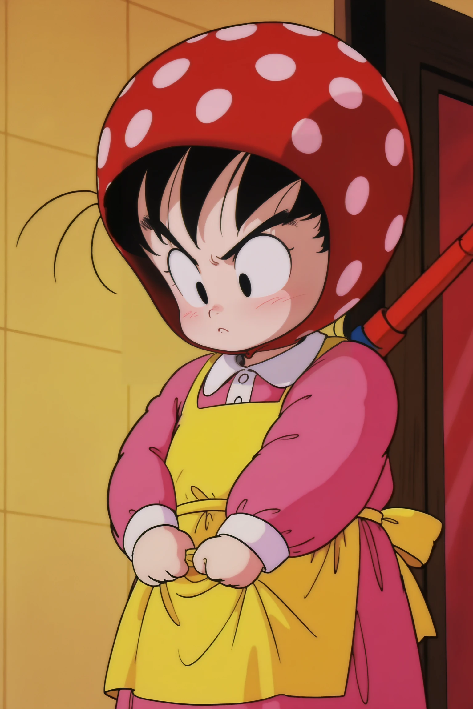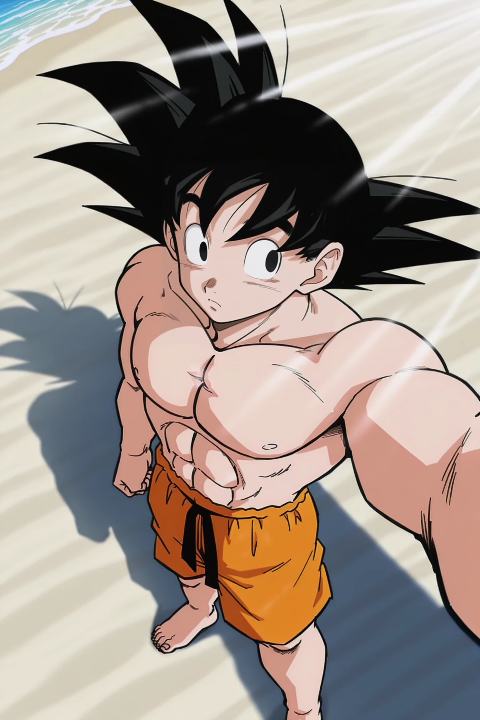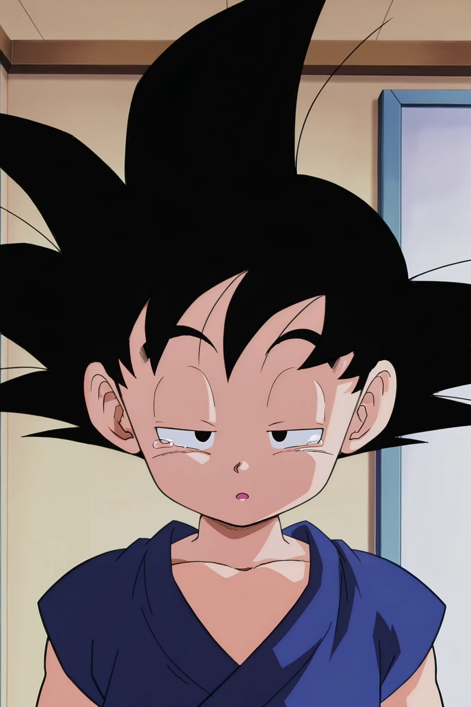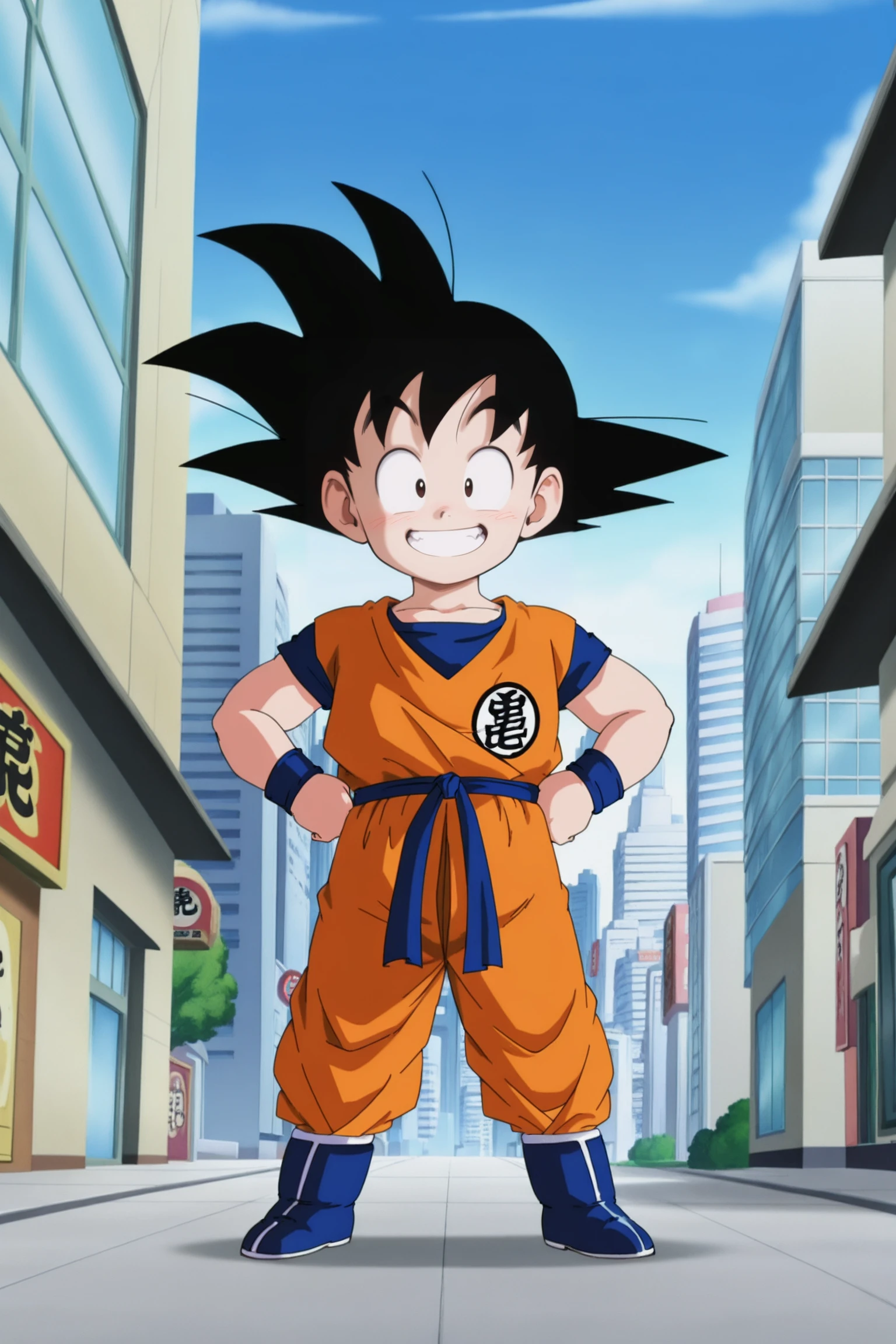 son goku, child, black hair, black eyes, spiked hair, monkey tail, male child, (chibi),