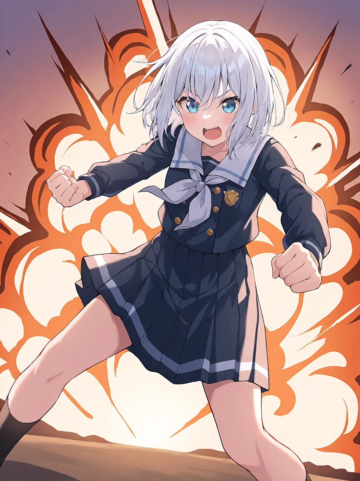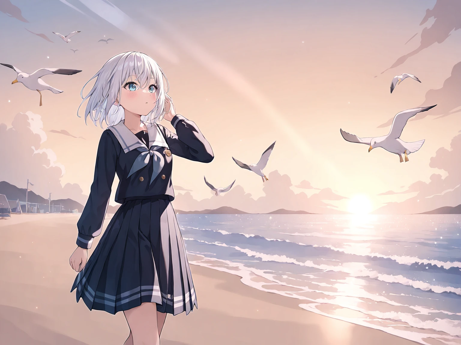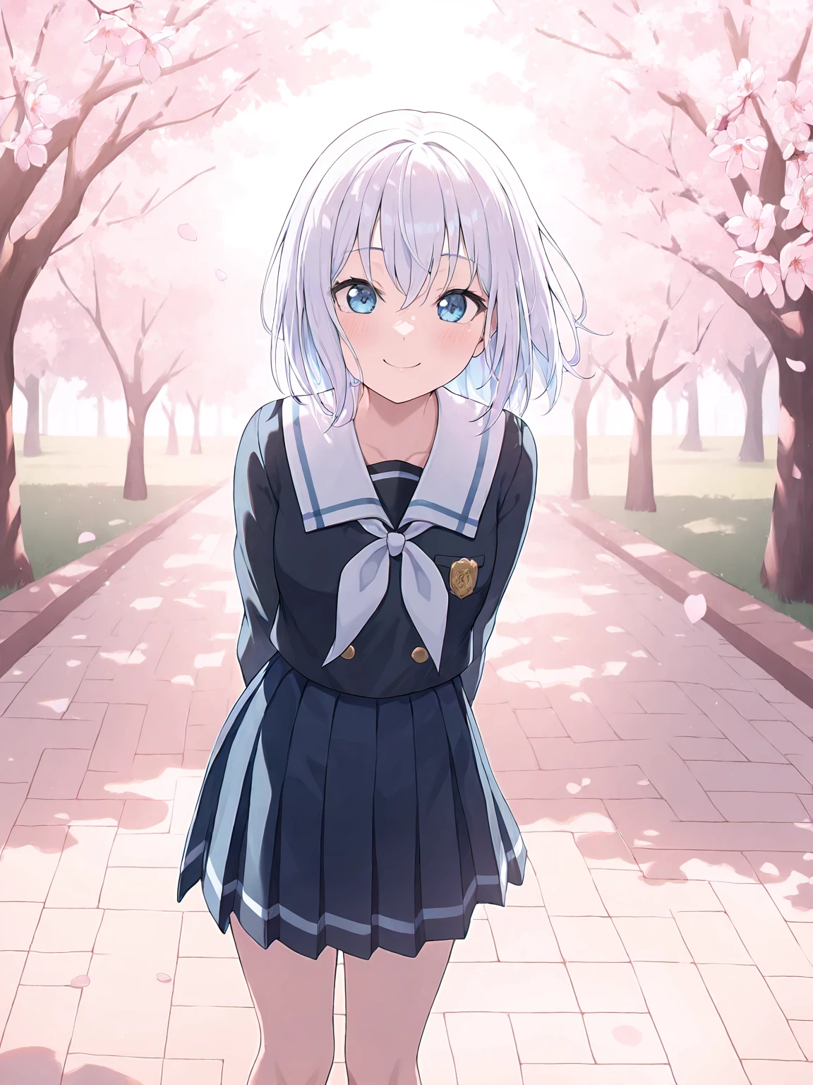 kurata mashiro,kurata mashiro uniforms,white hair,blue eyes,school uniform,black serafuku,pleated skirt,sailor collar,blue skirt