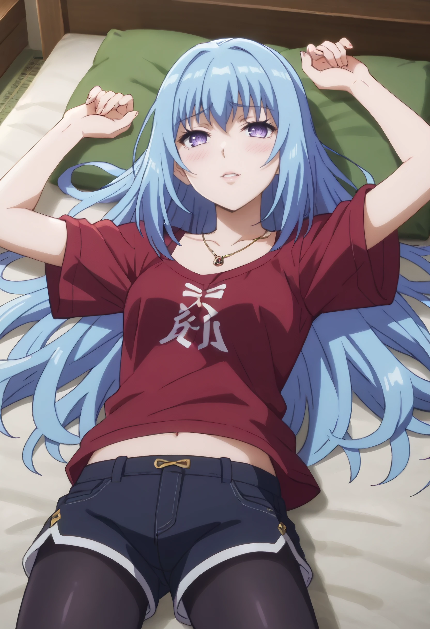 BNBEris, long hair, bangs, eyebrows visible through hair, purple eyes, hair between eyes, blue hair,