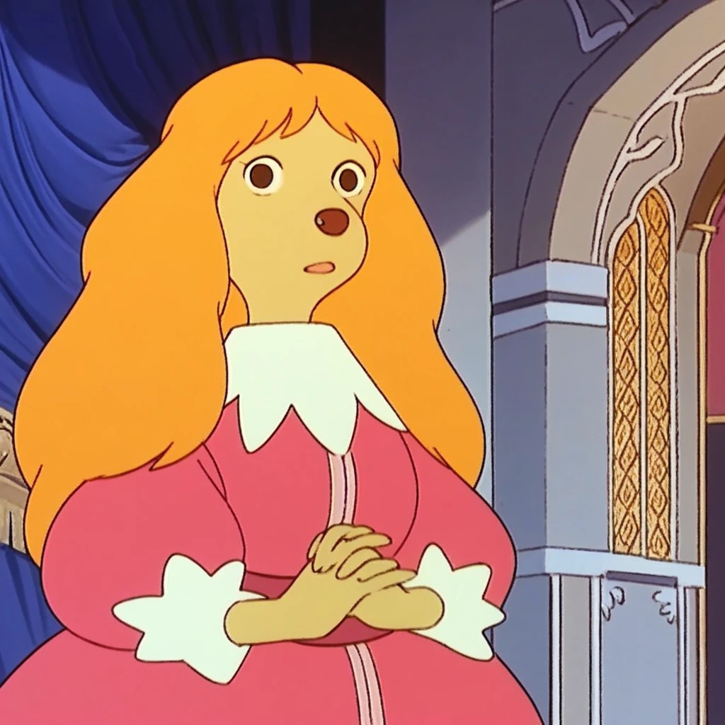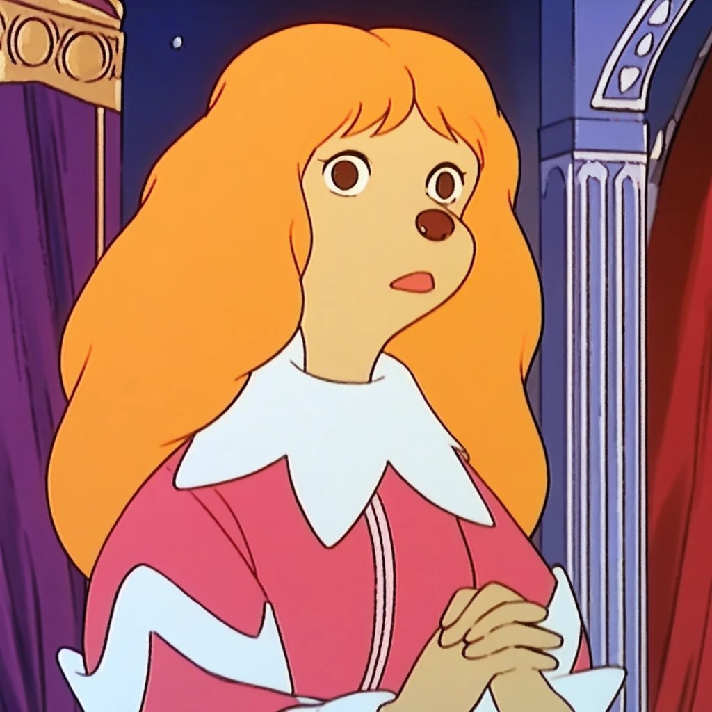 dogtanian and the three muskehounds, blonde hair, long hair, dog nose, black eyes, light brown fur