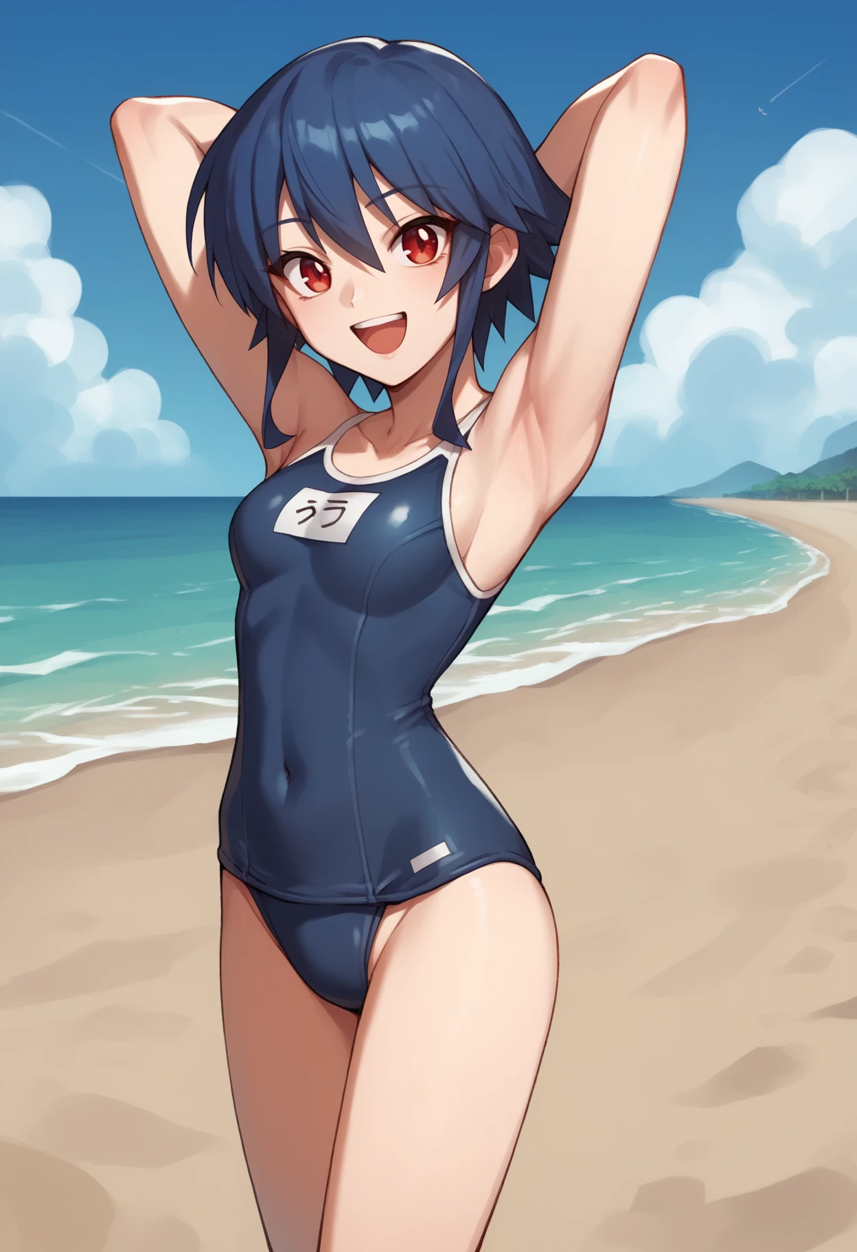 1girl, kaganoai, blue hair, short hair, sidelocks, red eyes
