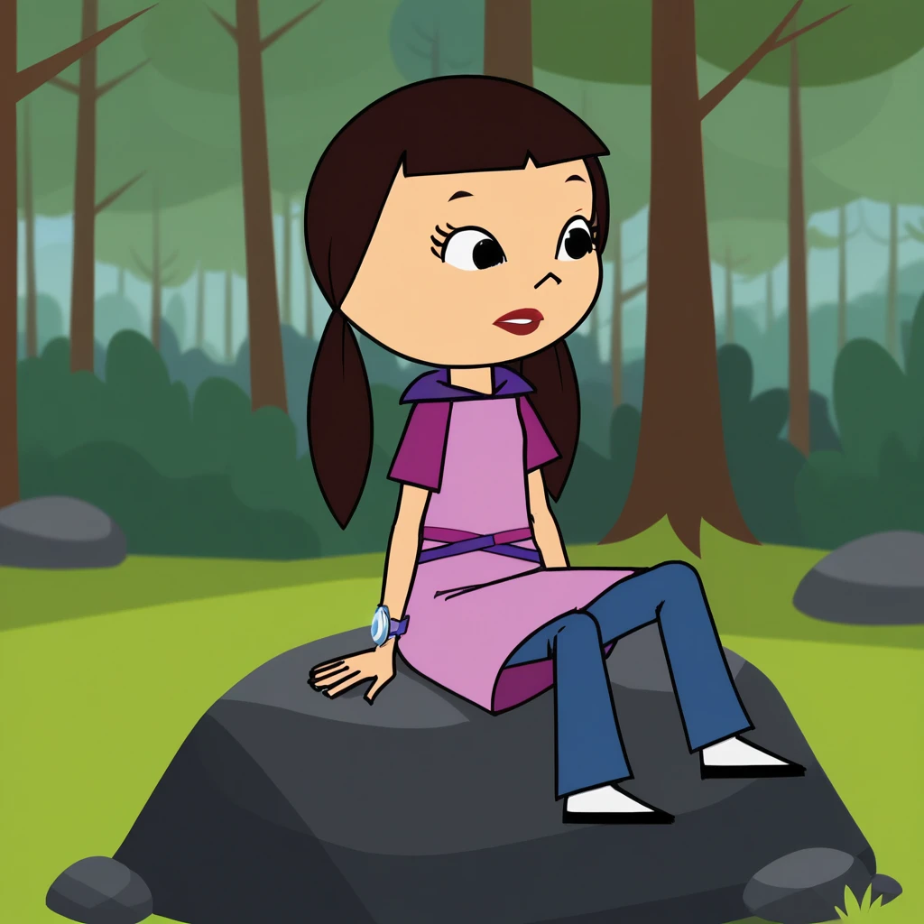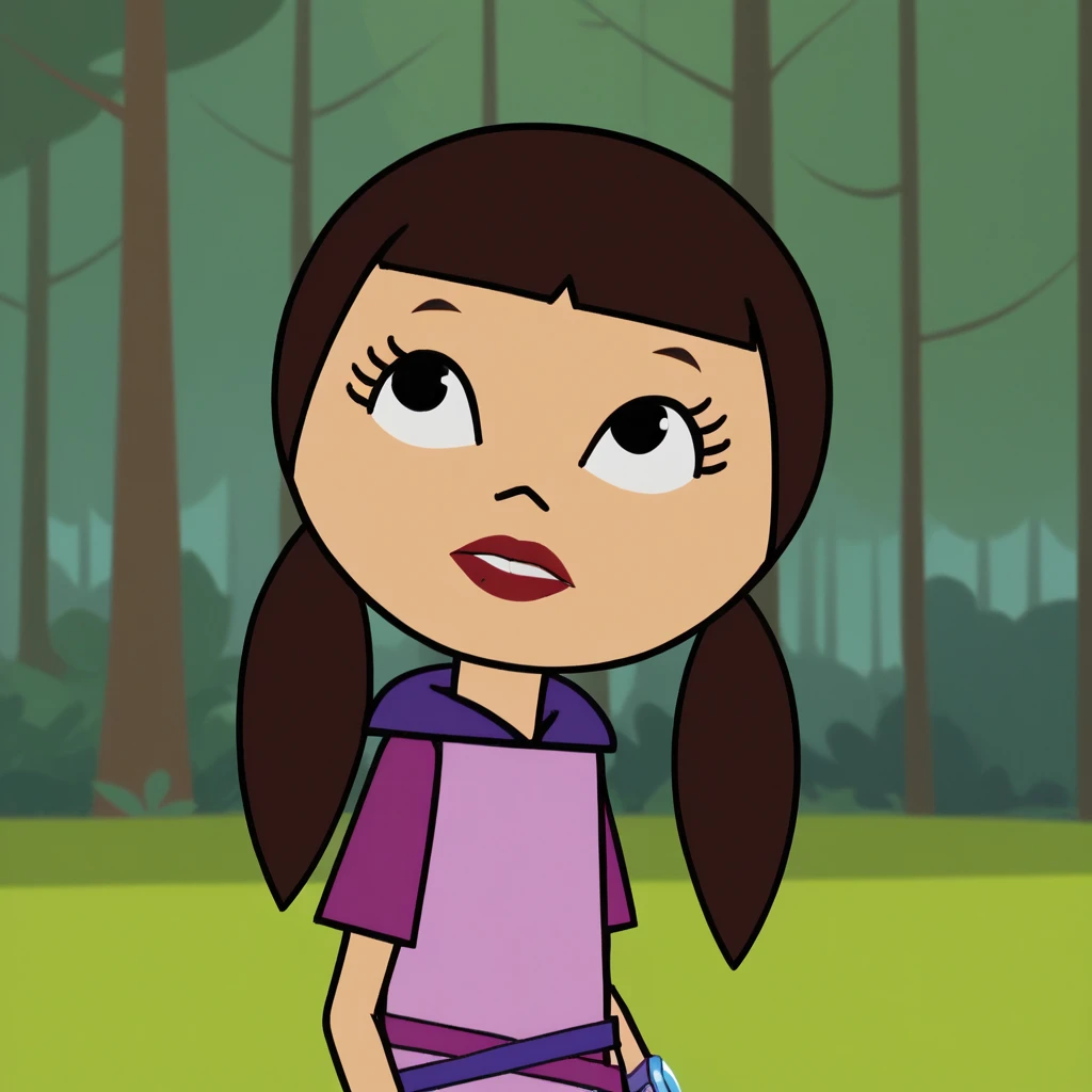 Marina, 1girl, solo, brown hair, twintails, black eyes, lipstick,