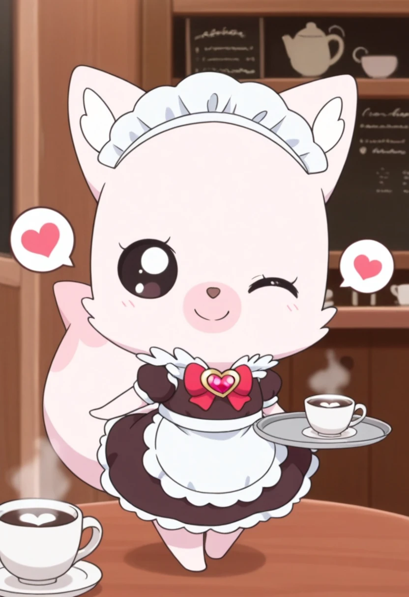Prompts: kome kome, heart brooch, furry, chibi, black eyes, no sclera