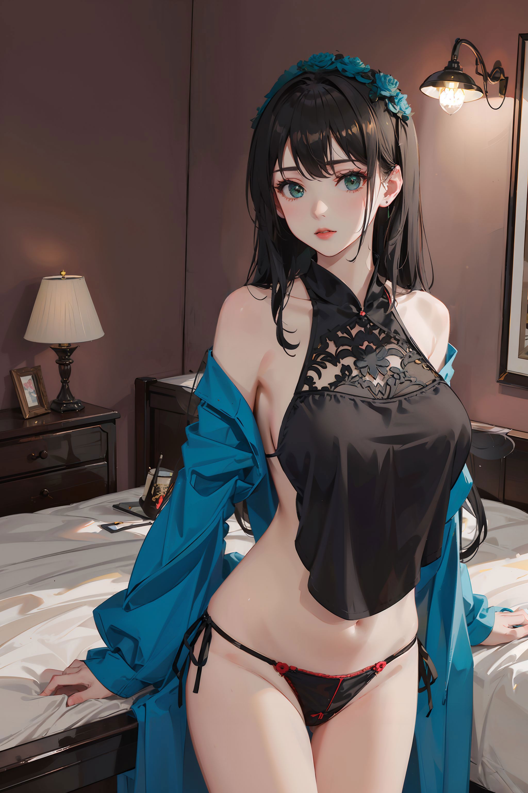 If you want her to be more sexy, add "NSFW" and replace "dudou" with "see-through dudou"