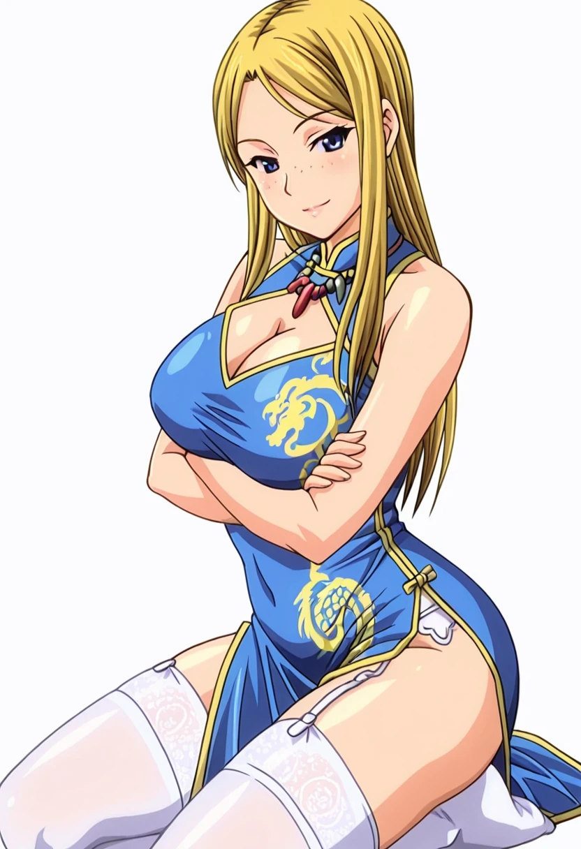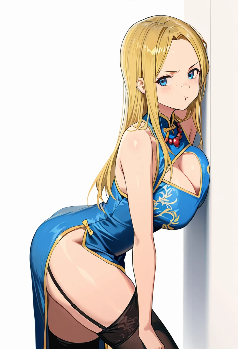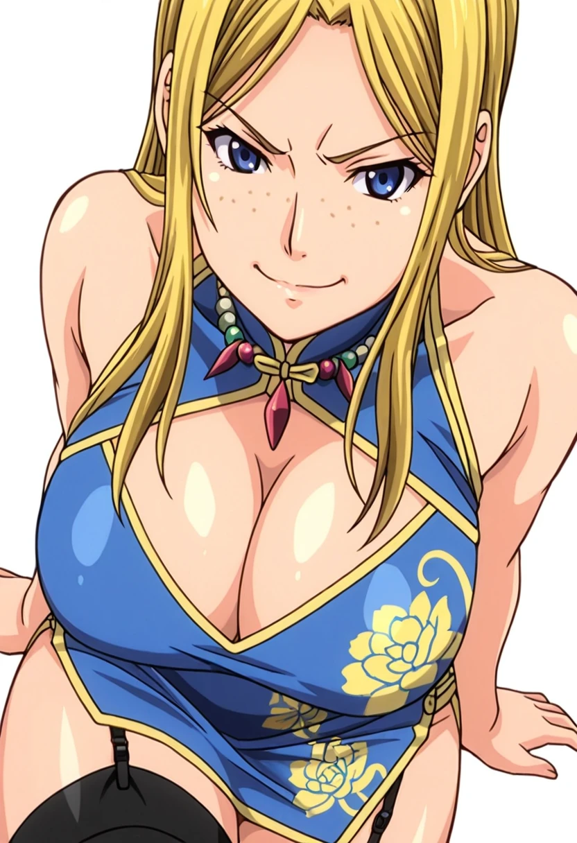 matty_cnr, 1girl, blonde hair, blue eyes, long hair, freckles, large breasts,👗Default Outfit