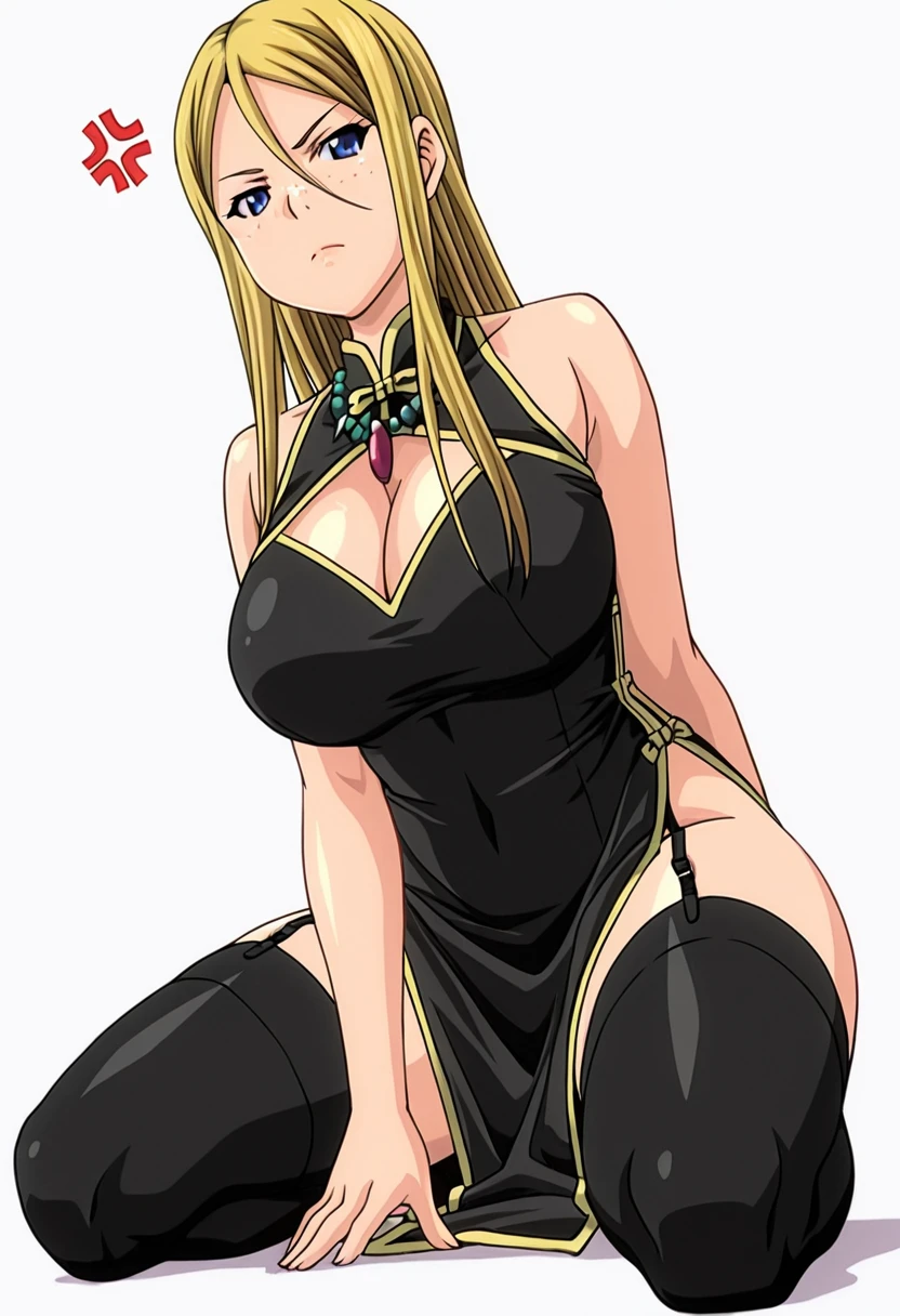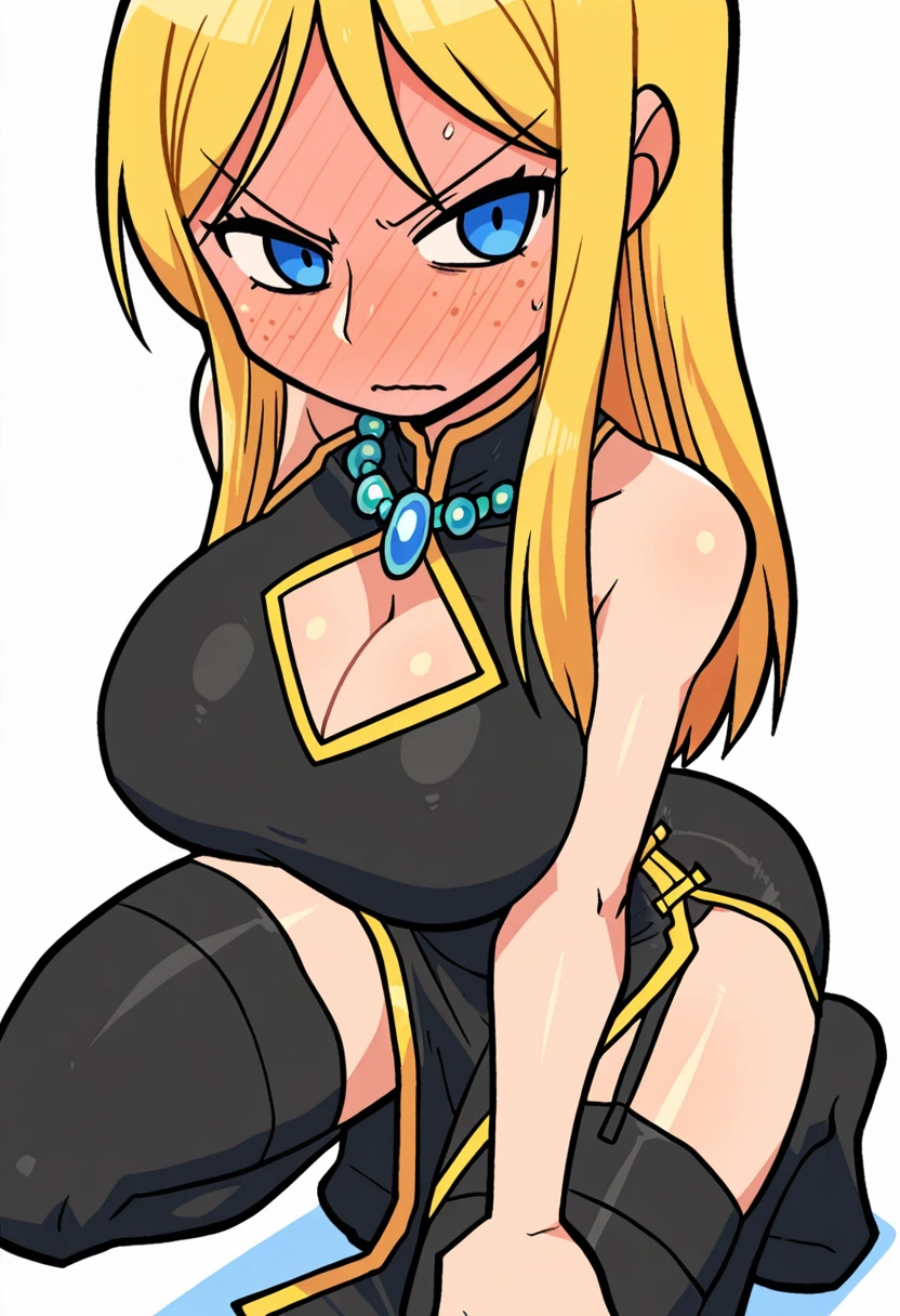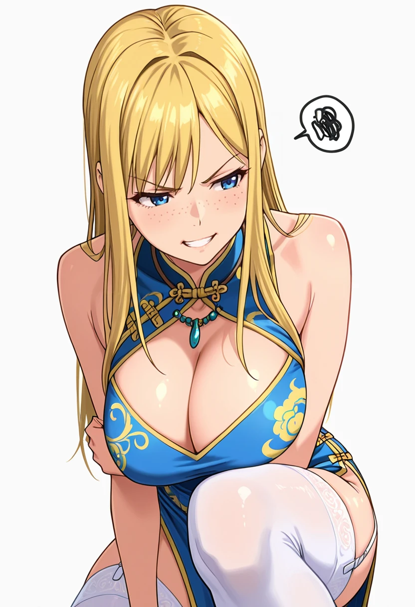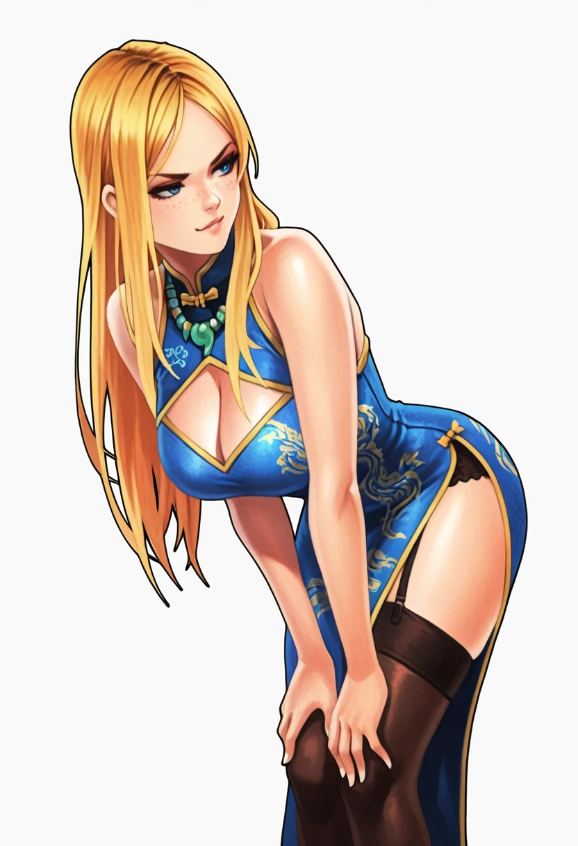 matty_cnr, 1girl, blonde hair, blue eyes, long hair, freckles, large breasts,👗Default Outfit