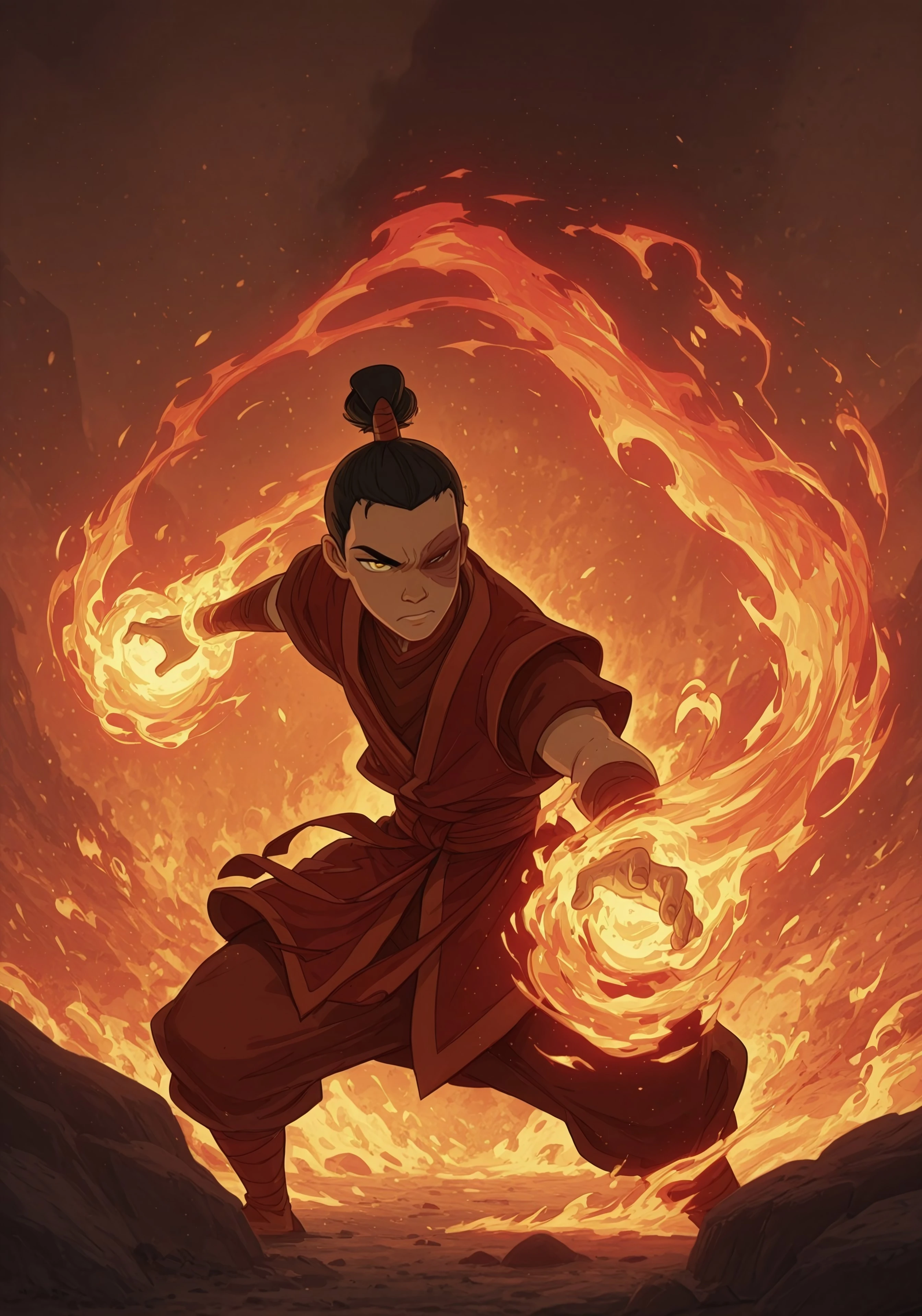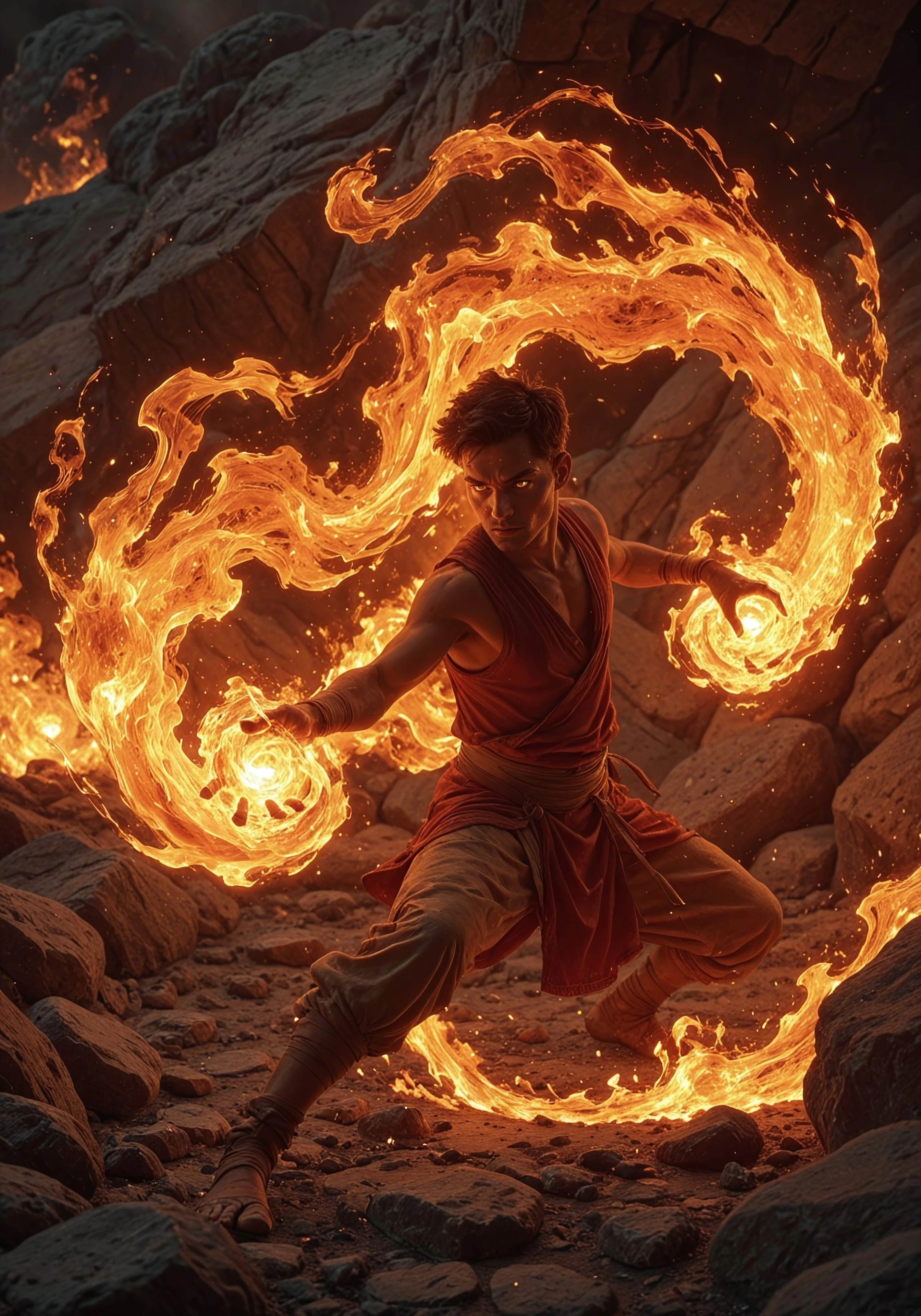 Firmagmb2, fire magic concept, casting fire magic, fire manipulation, flame spell, fire blast, glowing fire, hands on fire, magical aura, fire,