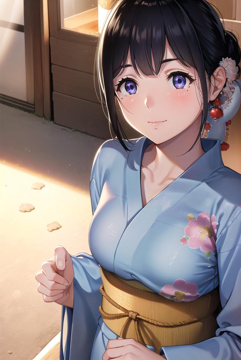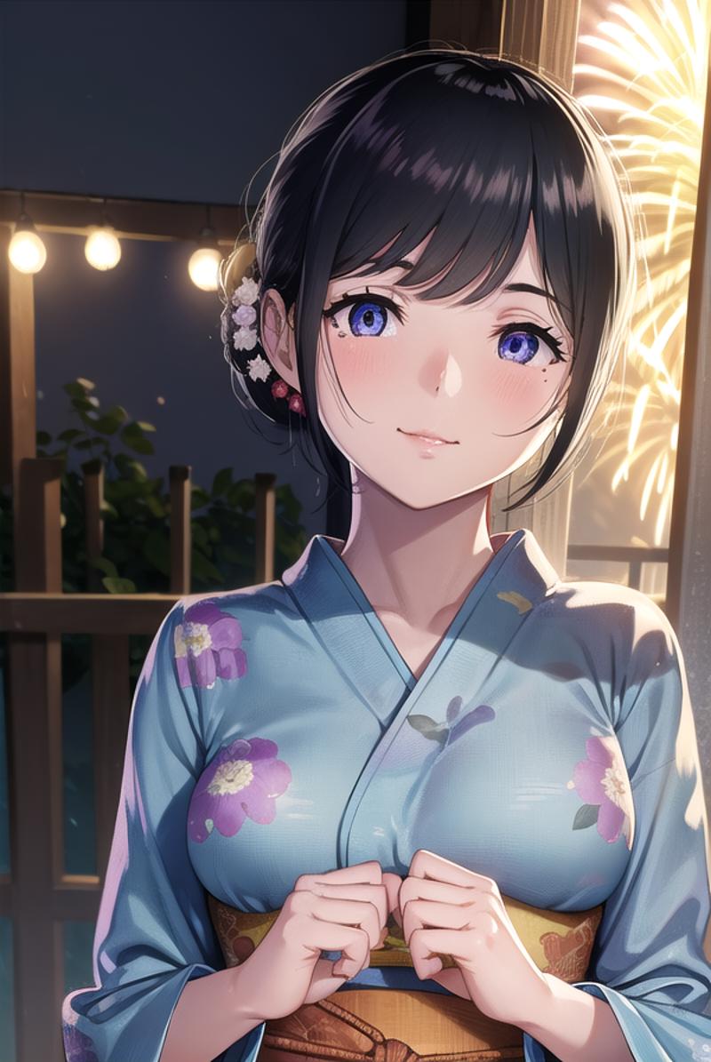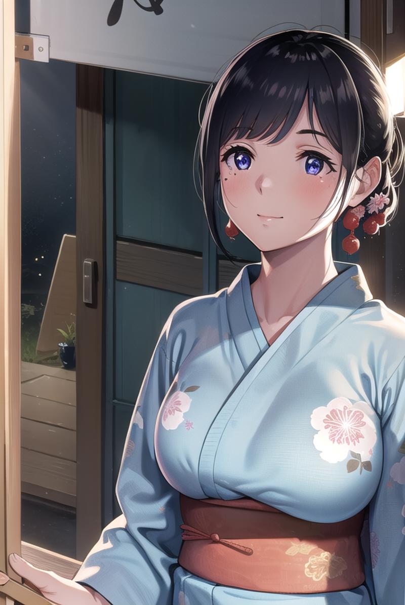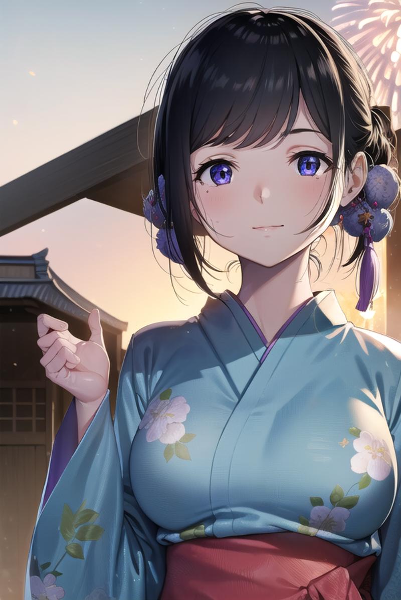 natsu to jun, short hair, bangs, hair ornament, mole, mole under eye, swept bangs, black hair, (purple eyes:1.1),