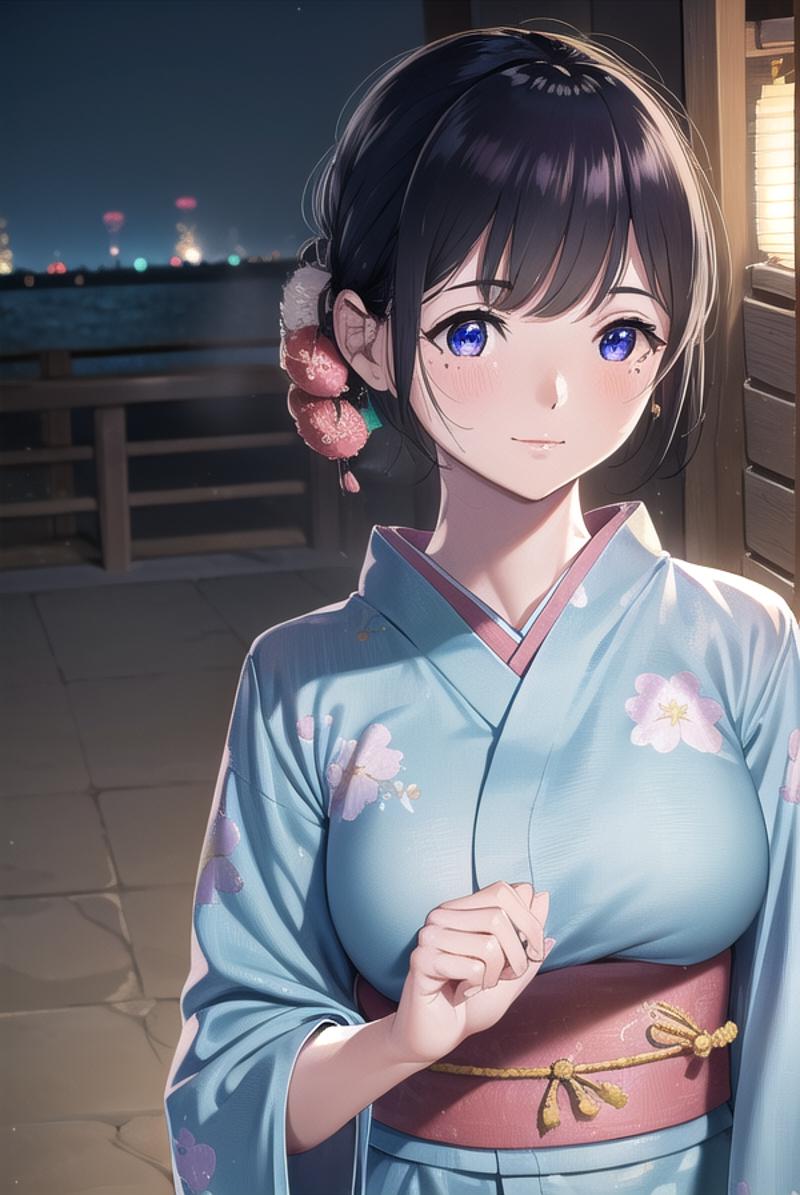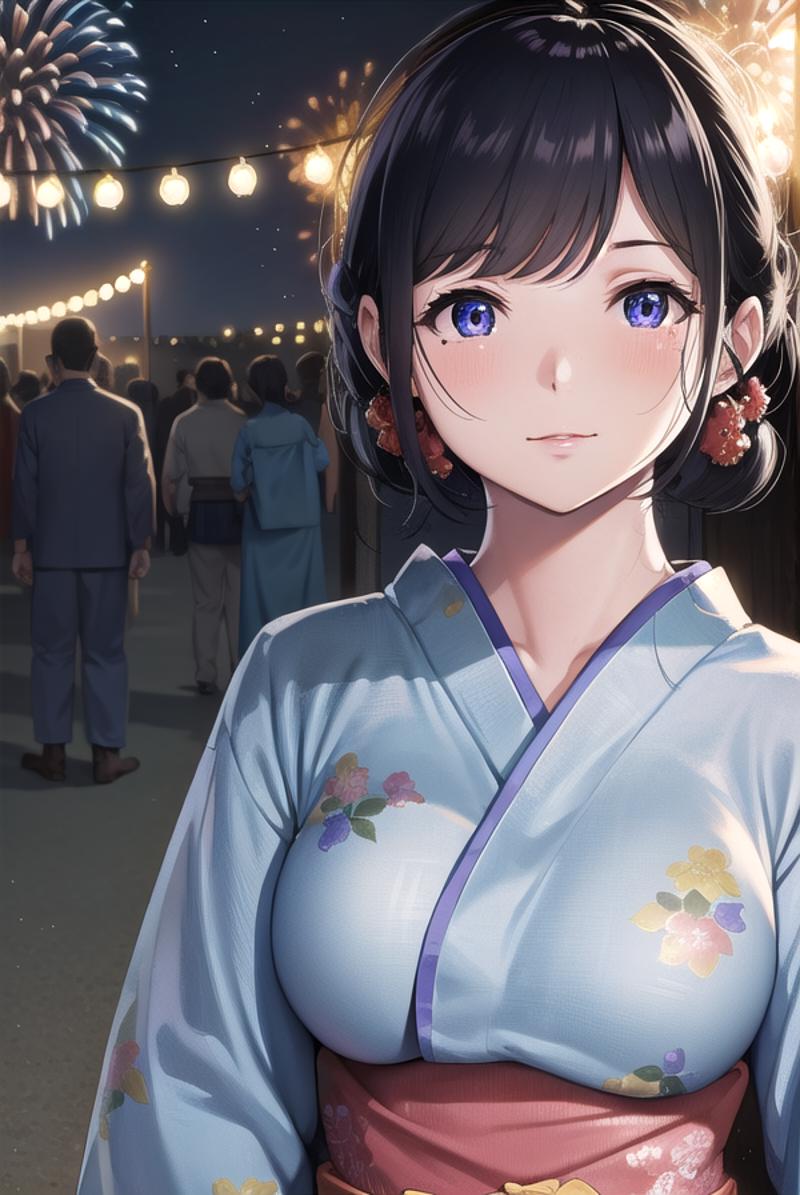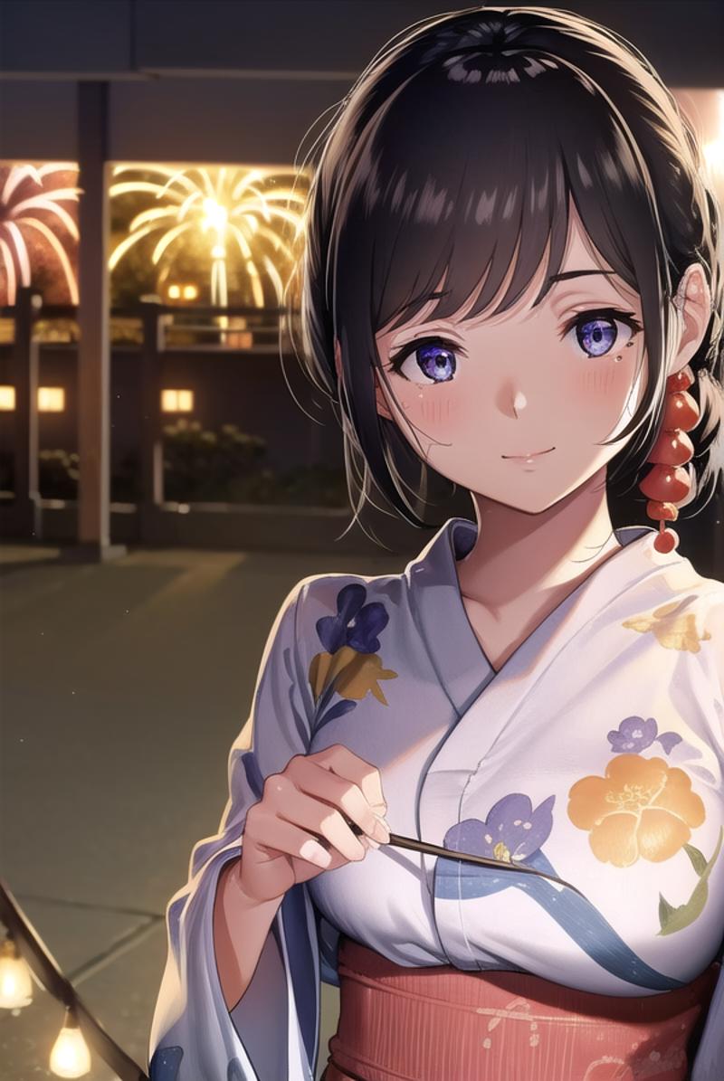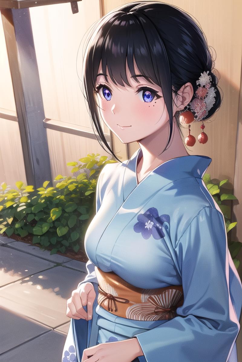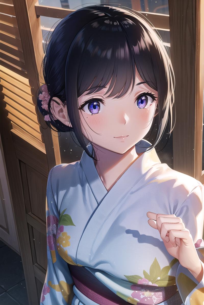 natsu to jun, short hair, bangs, hair ornament, mole, mole under eye, swept bangs, black hair, (purple eyes:1.1),