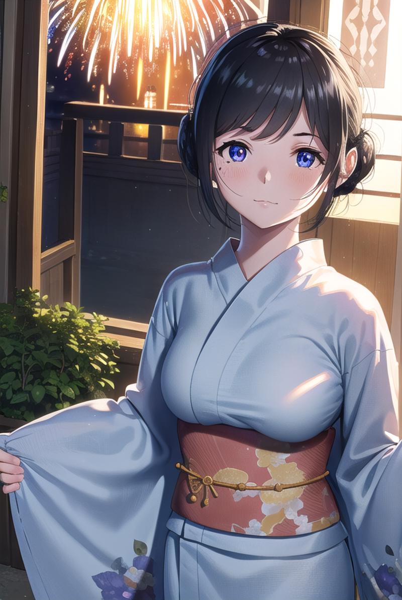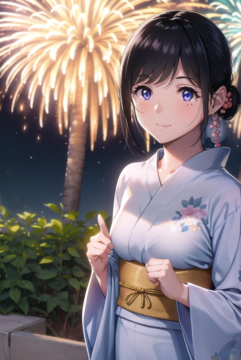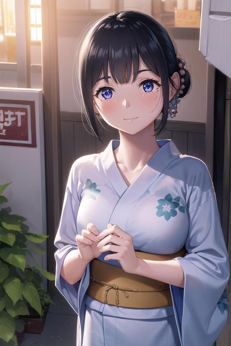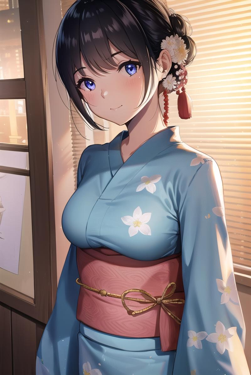 long sleeves, japanese clothes, kimono, sash, obi, floral print,